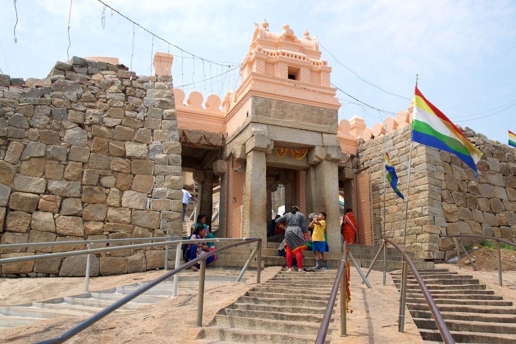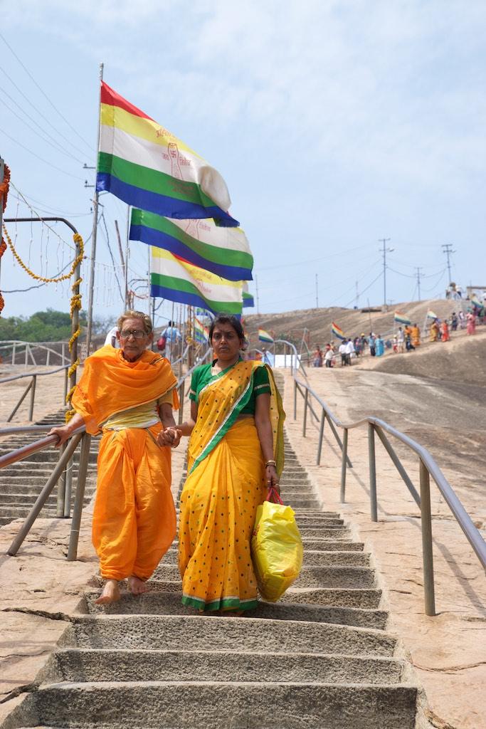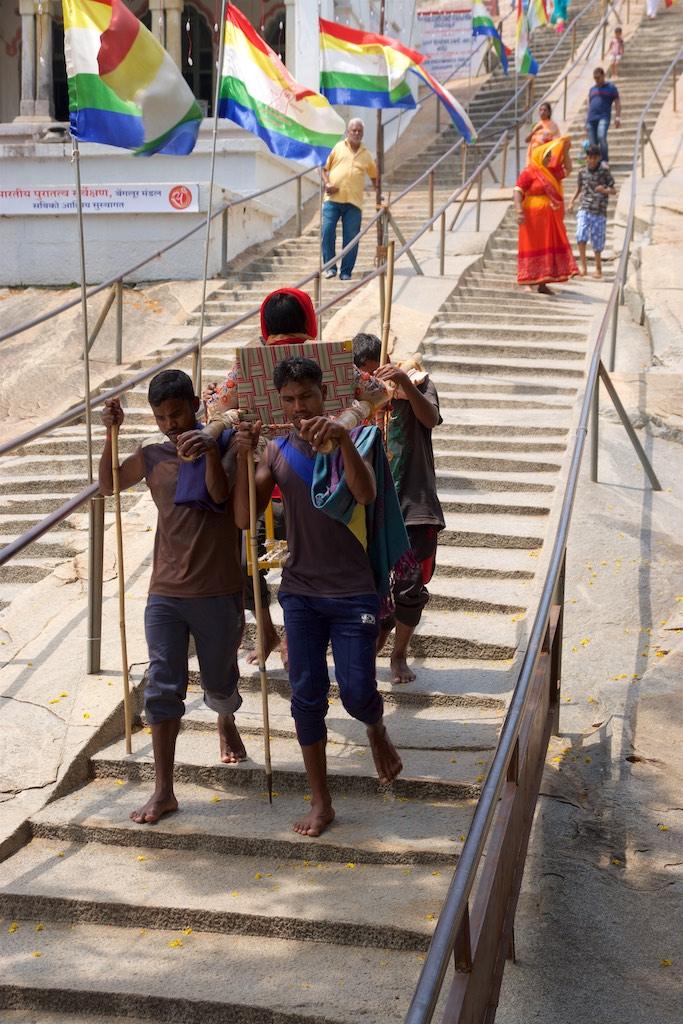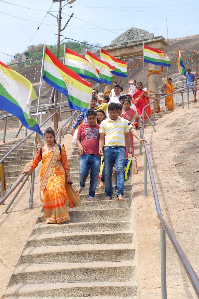 It was a steep climb up the 614 steps to the top of Vindhyagiri Hill. I could have opted for one of the man carried chairs which would certainly have made my trip easier but on the end I decided to do what most pilgrims did, climb the steps, barefoot of course.