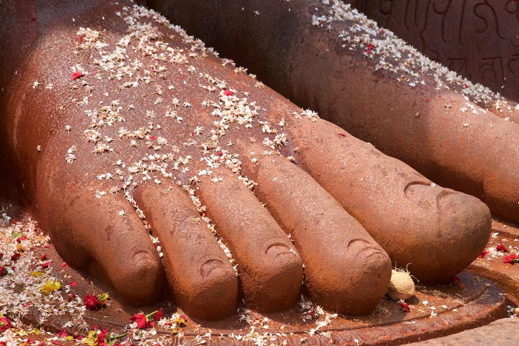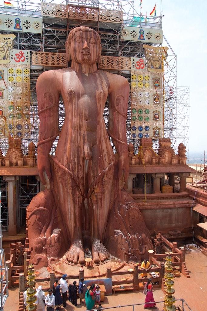 Instead of driving directly to Mysore I had requested a stop at be of central Karnataka’s other highlights that was to be seen in the pilgrimage town of Sravanabelagola. Atop the bare rocky summit of Vindhyagiri Hill, the 17.5m-high naked statue of the Jain deity Gomateshvara (Bahubali) was another sight not to be missed when in Karnataka. Commissioned by a military commander in the service of the Ganga king Rachamalla and carved out of a single piece of granite by the sculptor Aristenemi in AD 98, it is said to be the world’s tallest monolithic statue.