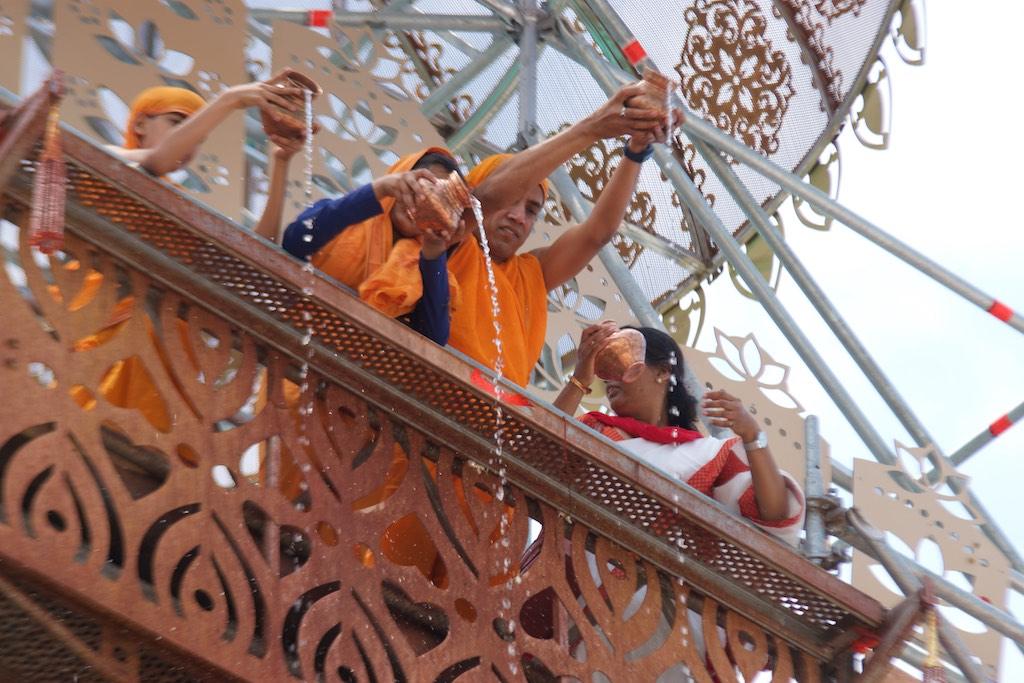 There were still some small ceremonies gong on and worshippers poured water over the head of the statue, something only possible with the scaffolding currently in place.