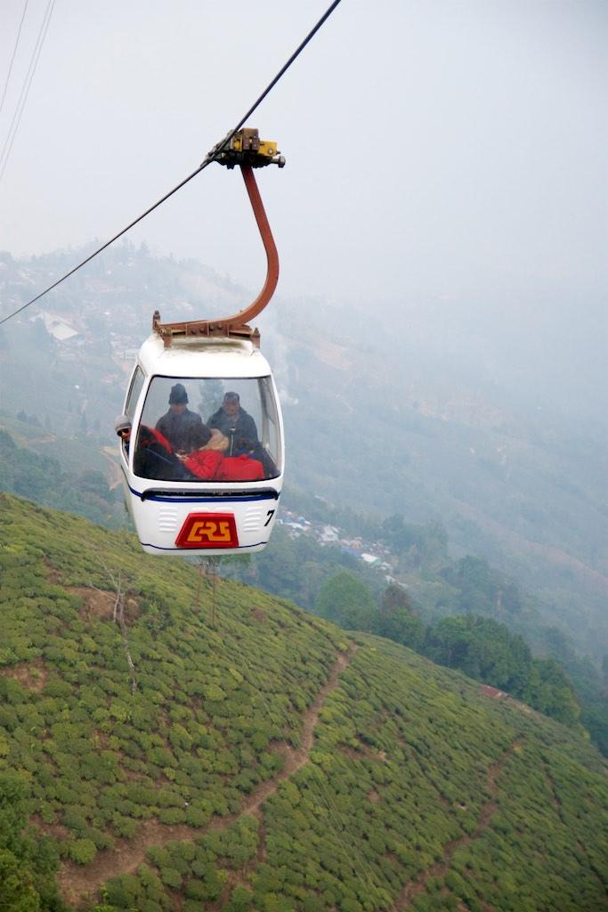 Our next stop was the Darjeeling rope way, a 5 kilometer long cable car ride that mostly went over beautiful tea gardens. It was a delightful ride, in spite of the fog, and I enjoyed it a lot. At the ground station there was not a lot to do so I had a tea and made my way back, this time I was lucky to have a cabin on my own so I could freely move to either side to make pictures.