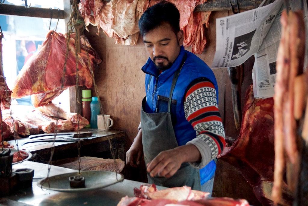 The official program for the day had ended but I had asked Rupak for a visit to the local market. I simply love markets as they are such a wonderful opportunity to make pictures and this one definitely was no exception to that. We started of at the part where beef was sold. Fridges are not required over here and everywhere big lumps of meat were displayed and cut, ready for sale.