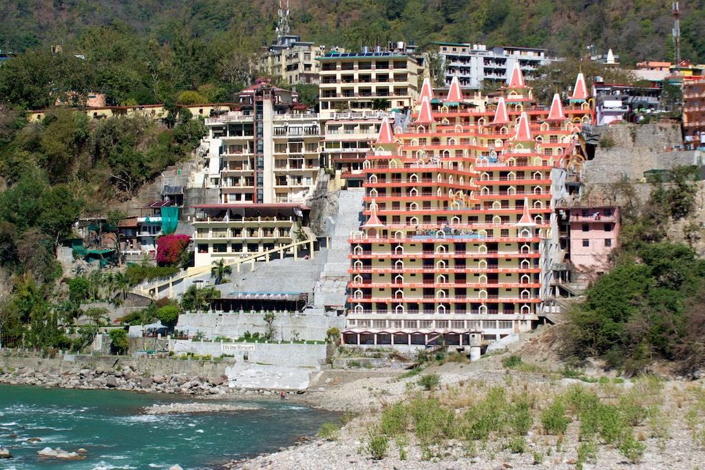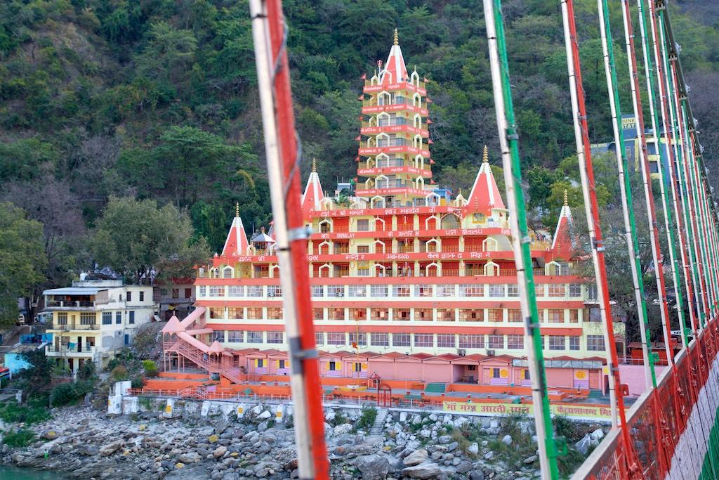 Eleven hours later I woke up, I must have needed it… After a refreshing shower I headed back towards the Lakshman Jhula hanging bridge where I had a healthy breakfast whilst overlooking the Ganges and the Swarg Niwas temple. It looked a bit weird, like a giant wedding cake and I did lot know what to think of it. Time to find out by myself.