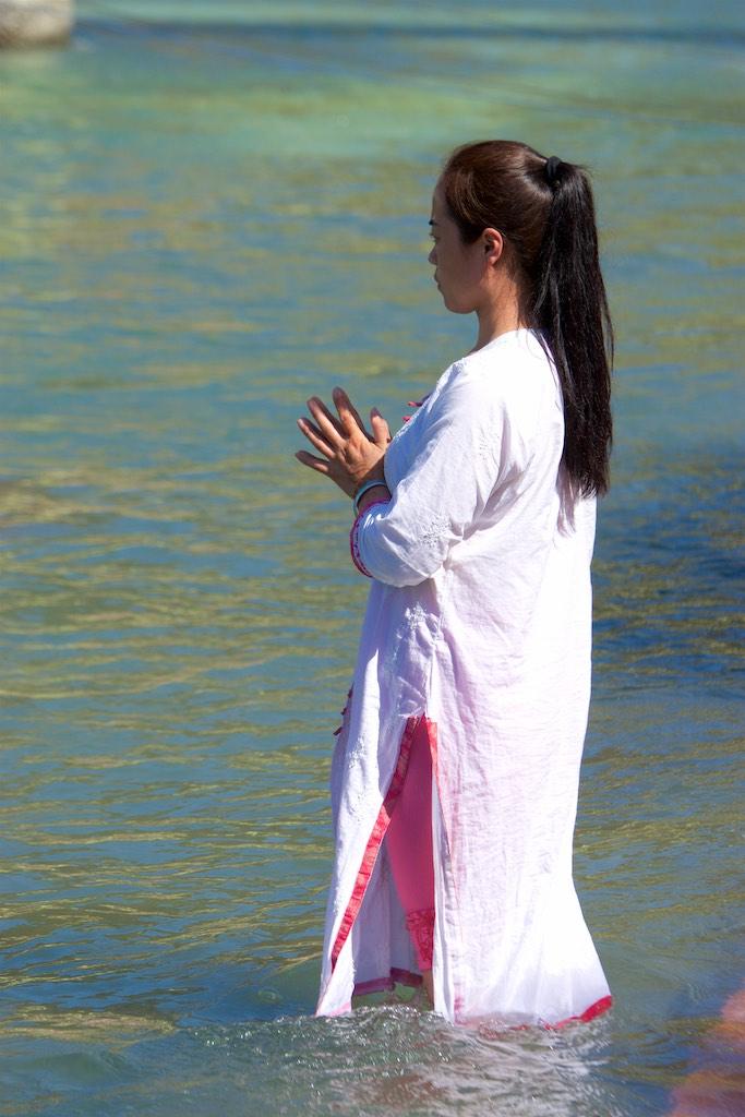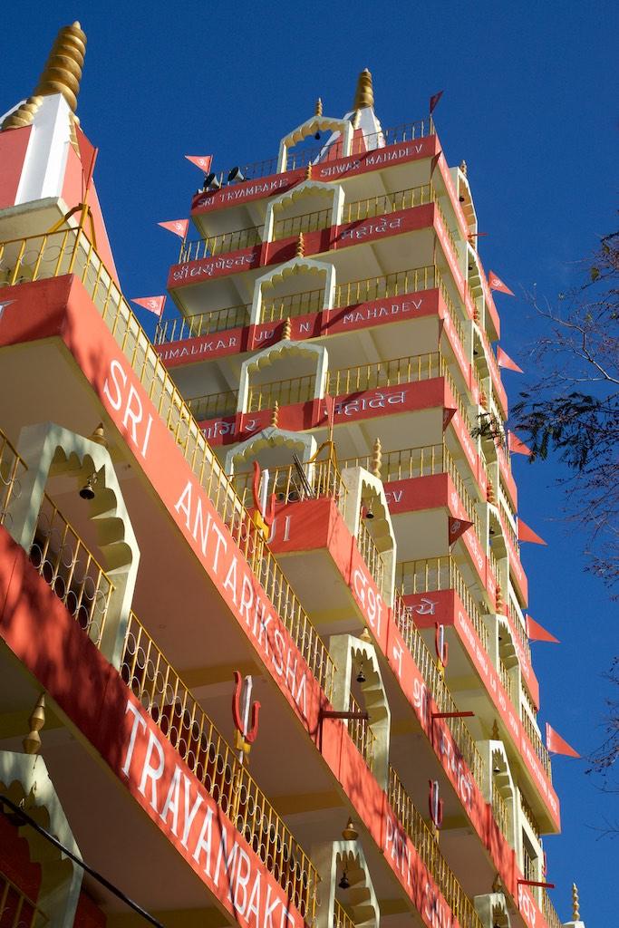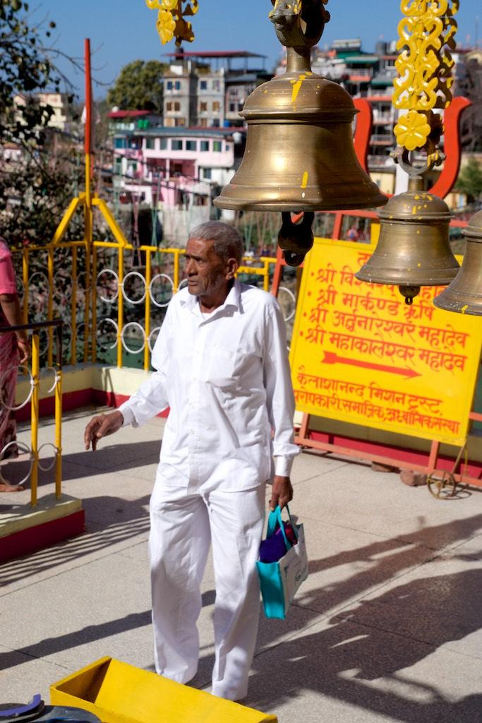 I crossed the 150 meter long bridge, left my sandals with the shoe keeper and entered the temple. Built by the organization of the guru Kailashanand, it resembles a fairy-land castle and has dozens of shrines to Hindu deities on each level, interspersed with jewelry and textile shops. A rather surreal experience whilst I slowly spiraled my way to the top. Worshippers stopped at a very deity to show their respect whilst shopkeepers tried to grab the attention of every bypassed, hoping to make a good sell.