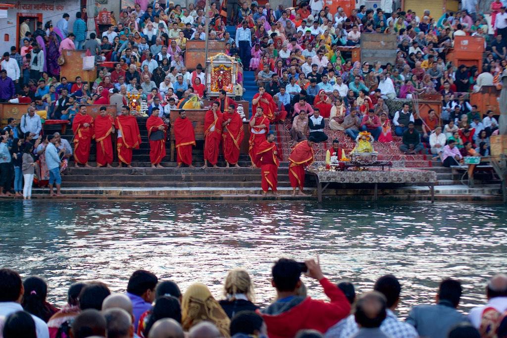 Lunch had done me well so I told my driver to continue as originally planned for a visit of the Haridwar arti. The city, located where the Ganga immerses out of the Himalayas is one of Uttarakhand’s holiest Hindhu places and every evening thousands of Pilgrims gather around the fast flowing Ganga for a ceremony led by seven Brahmans.