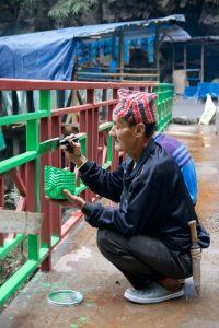 There was quite some activity of local people going on, most of them busy making selfies, and I did take some time to watch the workers improving the road and painting the bridge in a bright green color.