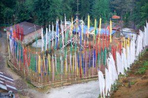 Not far from the site a new temple was built with a large statue of one of the lama’s dominating the upper floor. I looked down over another garden filled with prayer flags, a rather usual sign in this region.