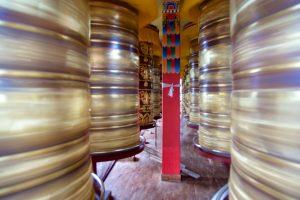The Labrang monastery was only a couple of miles further on uphill. Built in the 18th century it had a complete different look than what I had seen before. A monk showed us the prayer hall and the first floor where two lama’s were preparing for a prayer.