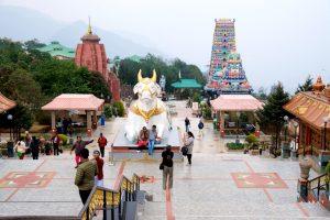 As soon as we arrived I could not keep the grimse of my face. The temples, replicas from Hindhu temples from all over India were created in such a kitsch and tacky way I in no way could take it serious. It felt like a Disney park for Hindhu’s. The park was dominated by an immense statue of Lord Shiva, looking over the temples.