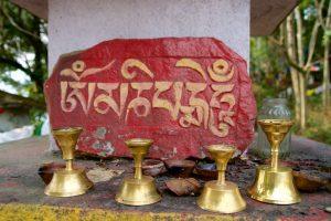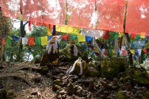 And that was exactly where we were going. The site was filled with prayer flags, a charming woodland garden with a small temple, a huge prayer wheel, a chorten containing earth from each corner of Sikkim and the supposedly original four-seat Coronation Throne. It was a lovely and tranquil place and after having paid the 25 euro cent entrance fee the key keeper opened the small temple especially for us.