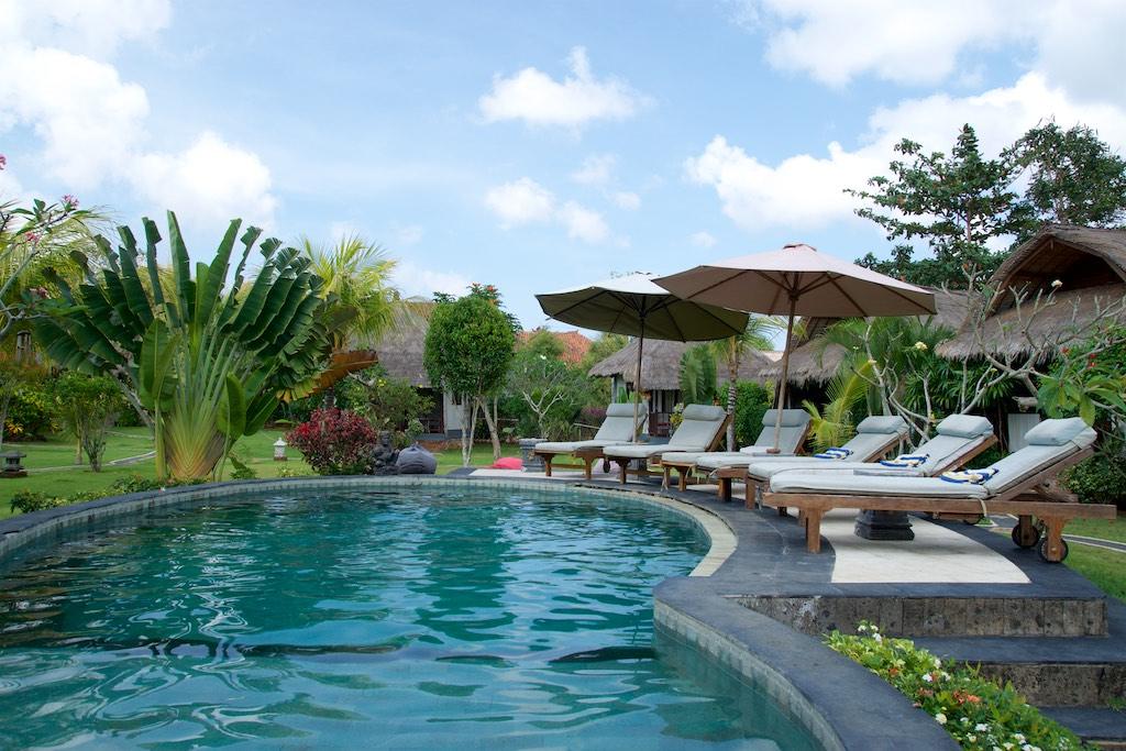 My bungalow, located in a beautiful garden was spacious and the pool directly facing the beach. No surfers this time as Tanjuang Benoa was more knowledge win forwarders ports like banana boats and jets ski’s. Fortunately all of that happened far off shore so the noise did not reach us.