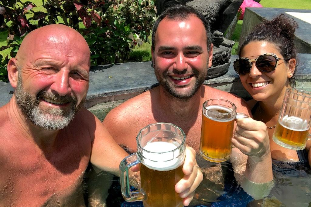 My bungalow, in the shape of a Lombok rice barn was simply gorgeous. Steps away from the pool and the restaurant. It was time for the first beer of the day. Later that evening we were entertained by live music from a three man band who were very enthusiastic and showed a lot of interaction with the audience. I chatted a bit with some of the other guests, had dinner and a couple of Bintangs (beer). It was a lovely evening and I could not have thought of a better place to start my stay in Bali.