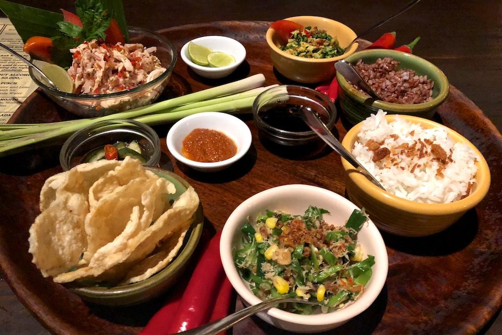 I was welcomed by a loud selamat dating from the kitchen staff and a waitress put a flower behind my ear, the traditional Balinese welcome. I was brought to my table and choose a spicy Margherita as an aperitif, it was the right choice.