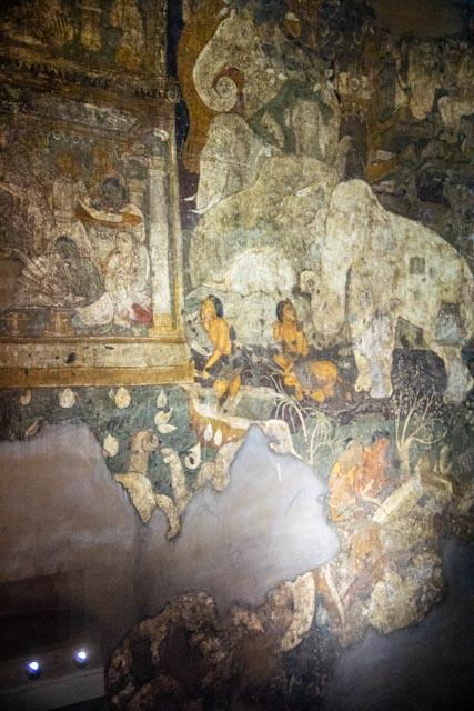 One of the primary reasons to visit Ajanta is to admire its renowned ‘frescoes’, actually temperas, which adorn many of the caves’ interiors. With few other examples from ancient times matching their artistic excellence and fine execution, these paintings are of unfathomable heritage value.