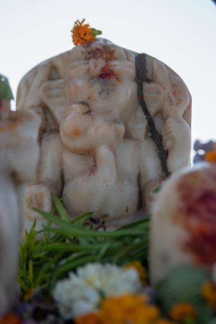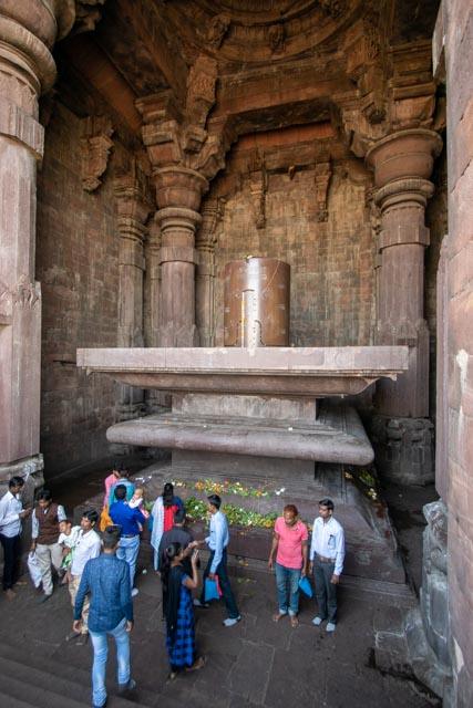The temple had an extraordinary appearance, from the parking lot it looked like a massive block on a hill side. I climbed the steps leading towards the temple and saw the first pilgrims busy with prayers and rituals. The massive block was open from one side allowing access to a massive stone dedicated to Shiva where 2 priests were guiding others with their prayers. An unusual place indeed but I was glad I had made the effort.