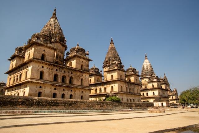 The cenotaphs, funerary monuments to Orchha royalty, huge and serene chhatris rise beside the Betwa River at the south end of town. I had already seen them from my resort but walking between them was even more,impressive.