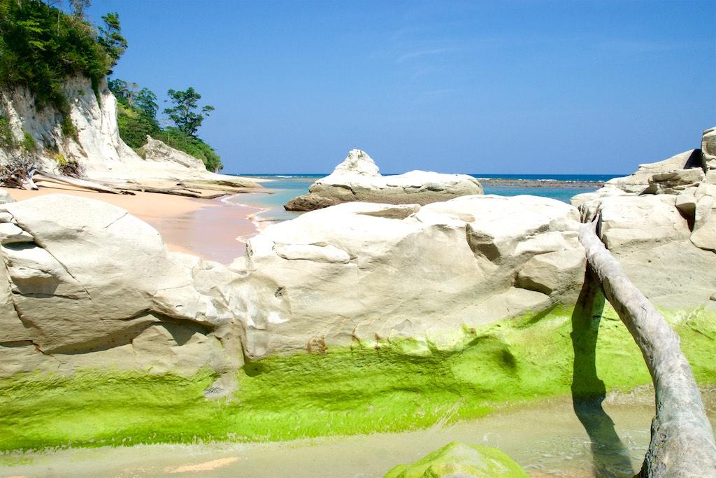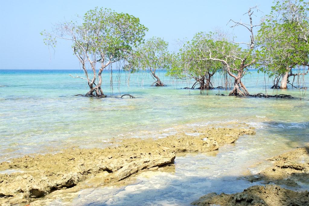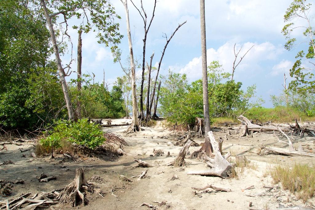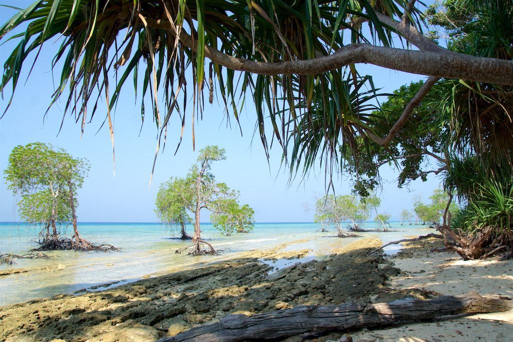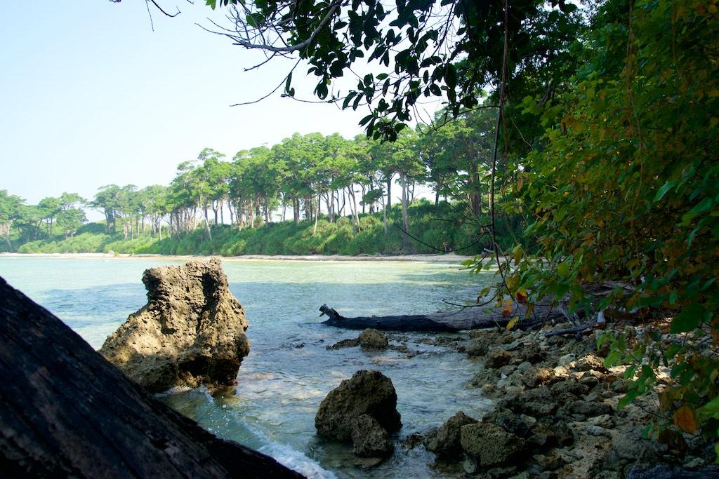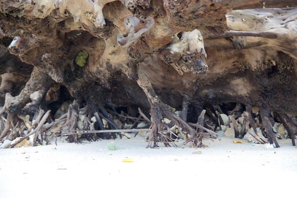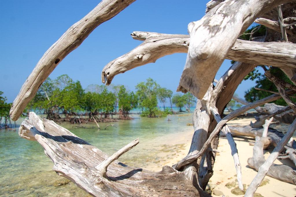After a short conversation I continued my walk. The beach came to an end and I had to walk over some razor sharp rocks that I could even feel through my sandals. I was carefully not to fall as that would have caused some serious injuries and definite damage to my camera. Progress was therefor slowly. It I made it to the next stretch of beach. In front of the beach there was a small mangrove forest which was tremendously picturesque.