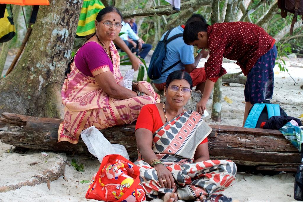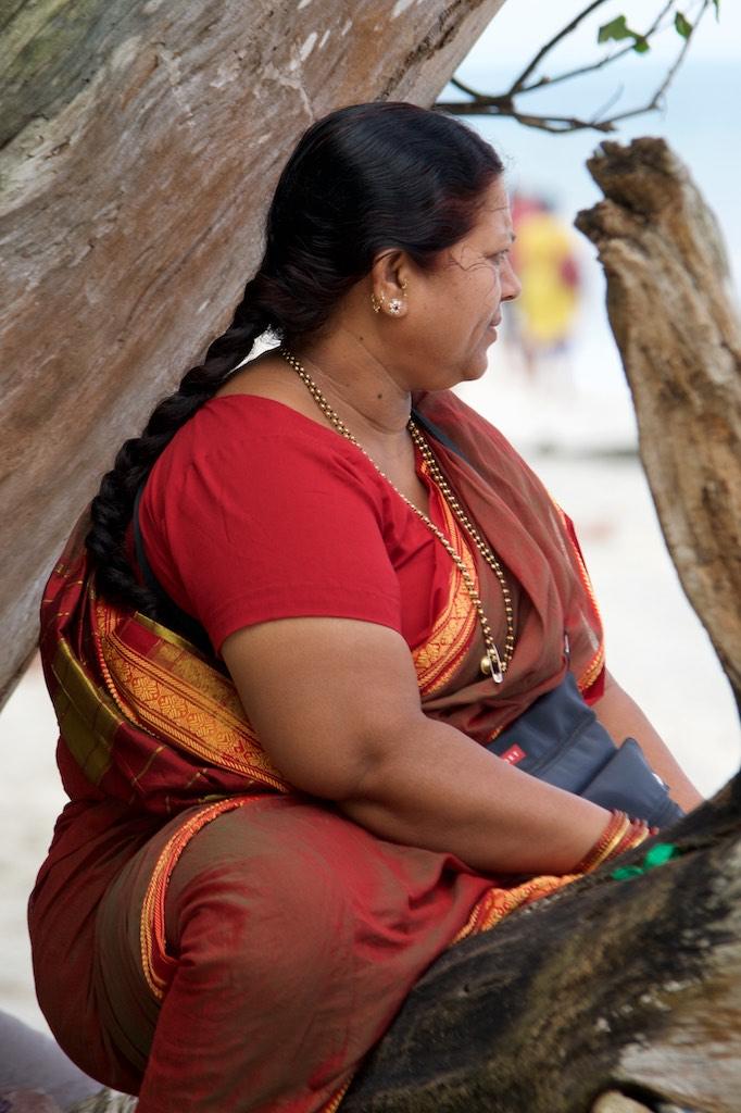 I bought a bottle of water at one of the food stalls and asked whether it was possible to go on foot to Laxmanpur Beach in the north of the island. As it was low tide it should not be a problem according to the vendor. I followed a beautiful stretch of beach where at the end I met a young couple who asked me to make a few pictures, their poses were in true Bollywood style. I was allowed to make some extra pics with my own camera of the young couple who were obviously deeply in love.