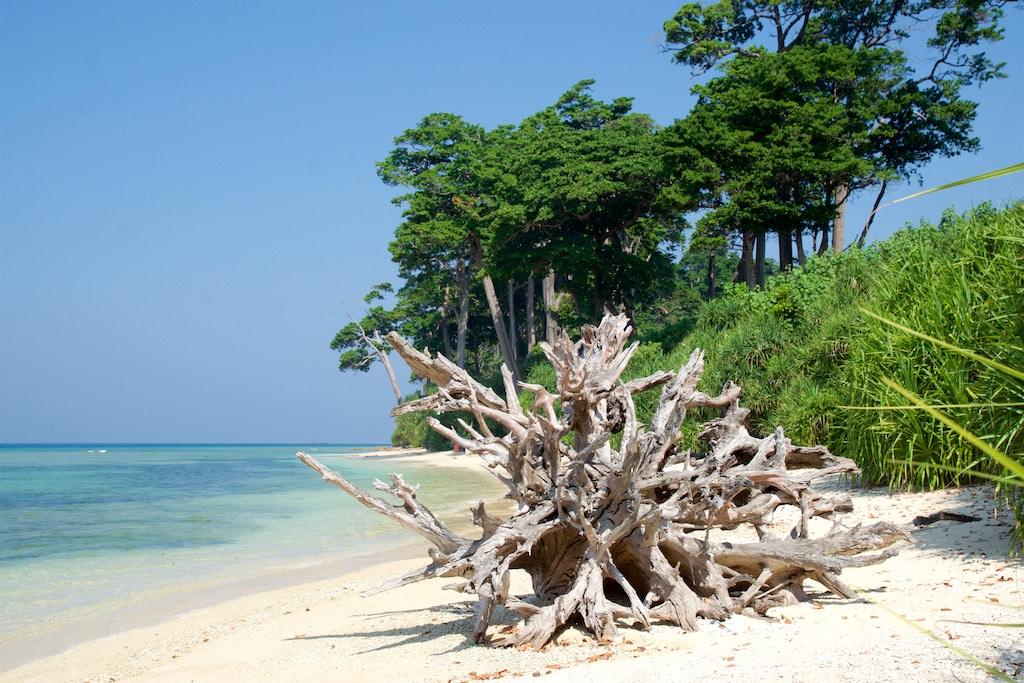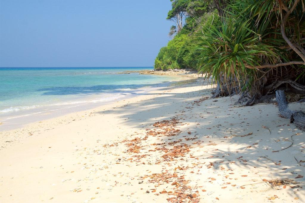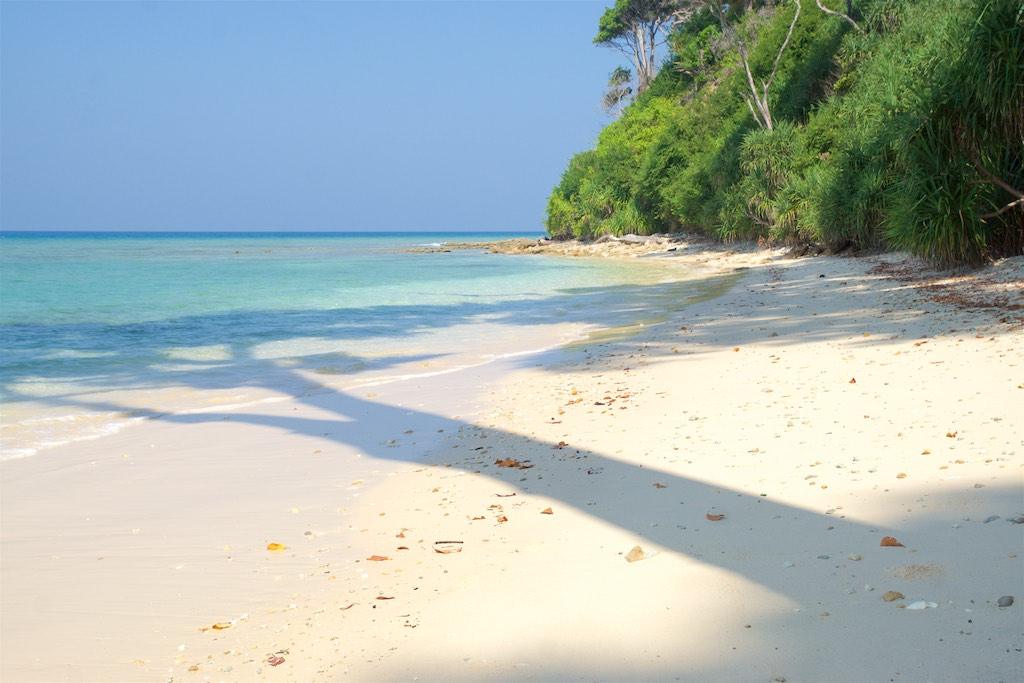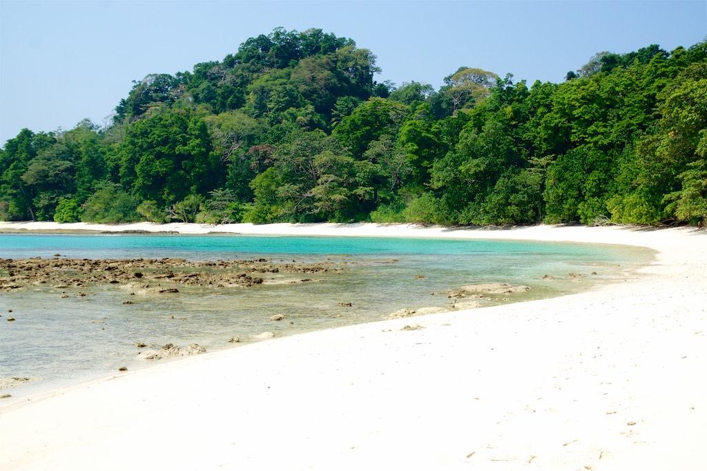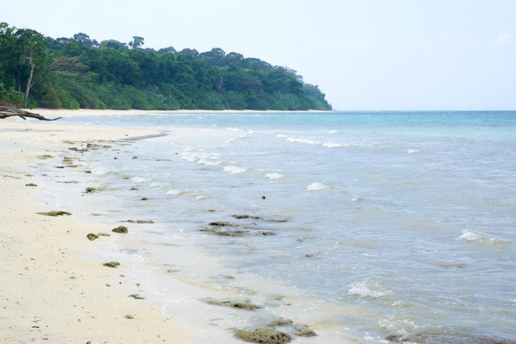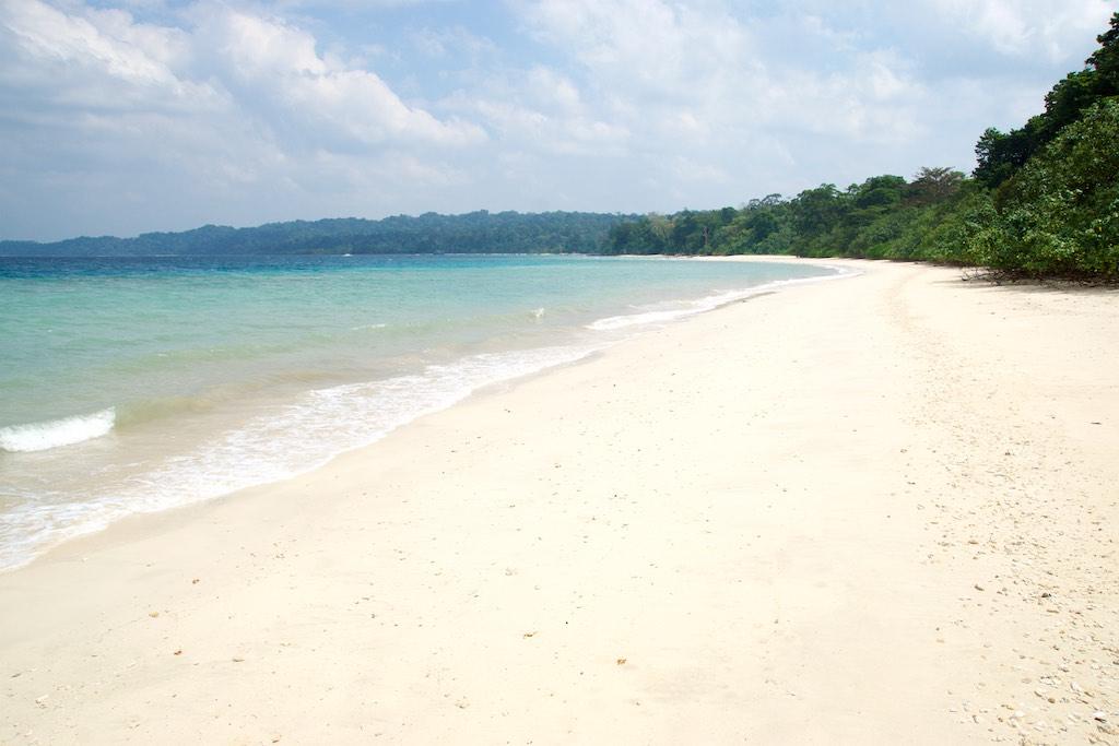 All beaches I had visited so far on Havelock and Neil Island had been absolutely stunning and this one was no exception to that. It looked like a tongue of snow white sand surrounded the northern tip of the island and that was once again surrounded by different shades of emerald and blue. The water was crystal clear and looked extremely inviting.