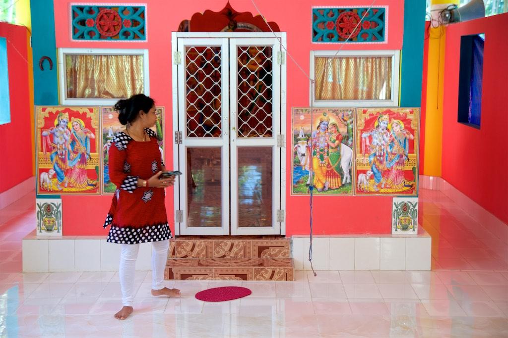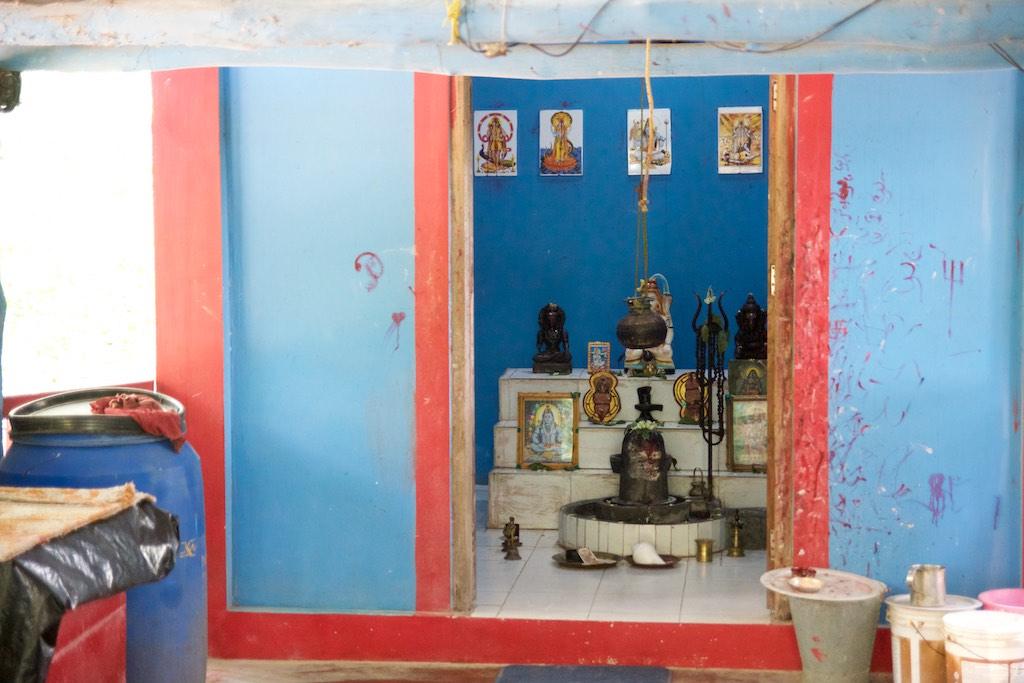 By the trees I spotted a small sign telling there was a temple so I followed the path and discovered 2 small and modest temples. Nothing compared to the ones at mainland India but both were lovingly taken care off. At the 2nd temple I was even invited to make pictures and the doors protecting the deities were specially opened just to do that. I thanked the friendly lady for her efforts and made my way back to the beach.