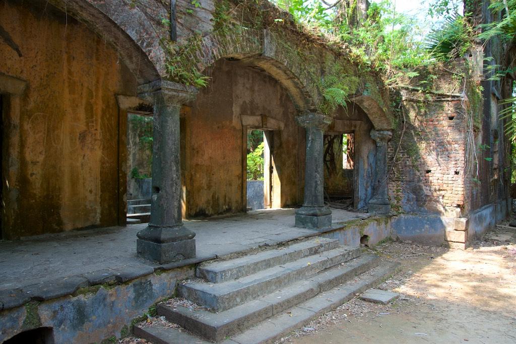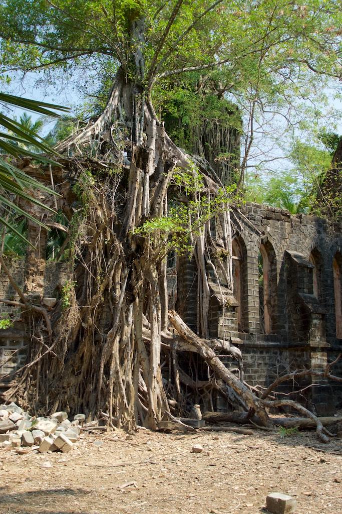 Next day was another opportunity to witness remains of the British colonial past, I took a boat to Ross Island that was only one kilometre away from Port Blair that once was the administrative headquarters of the British at the Andamans. The island’s old English architecture is still standing, despite an invading wave of fast-growing jungle vegetation. About a century ago 500 carefully selected “happy few” lived the good life which was carefully mimicking the English aristocracy. Those were the days… But now it looked more like a Victorian version of Angor Wat where nature was taking back it’s space taken over a century ago by human beings. An earthquake in 1941 started the downfall of Ross Island and the Japanese finished off the job in WW II. In 2004 Ross Island still played a vital role taking cub of the bashing of the tsunami and protecting Port Blair from further damage.