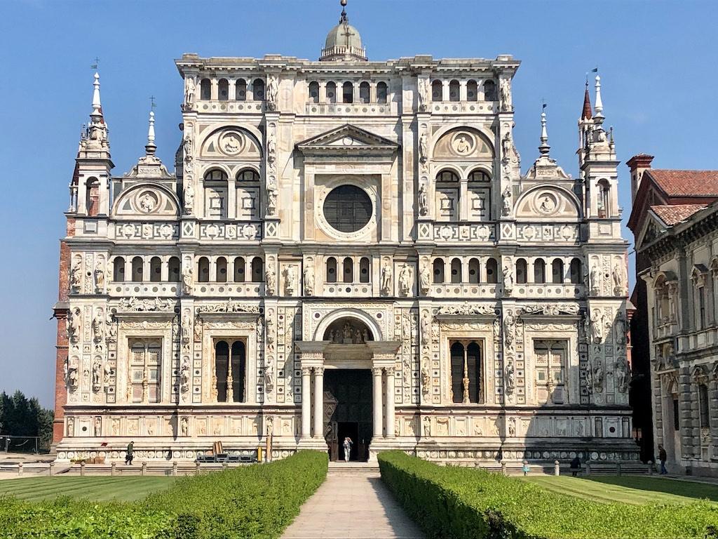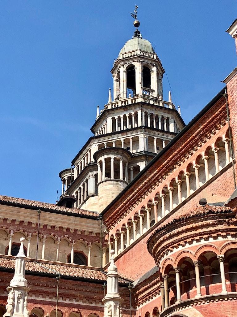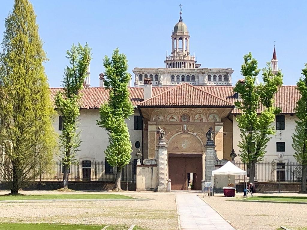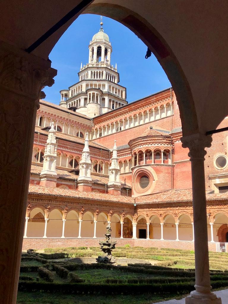 Our next destination was the Certosa di Pavia, one of the largest monasteries in Italy. We arrived during lunch time so first we went to a trattoria for a wonderful lunch sitting under wisteria that covered the garden terrace. We could not have wished for a more romantic spot.