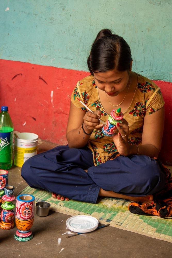 The next stop was Raghurajpur Village, known for it’s artists who create the most beautiful paintings on palm leaves, canvas and wood. I was demonstrated the technique and enjoyed the frescos covering many of the houses. Being contacted though by so many people who wanted to show me their art (in the hope for a sell of course) was a bit overwhelming though. Still I’m glad I went and although I admired the skills of the artists I managed to leave empty handed…