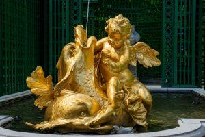 A bit further we got the first glimpse of Schloss Linderhof. It is the smallest of the three palaces built on order from King Ludwig, and also the only one to be completed before his death. In front of it was a wonderful garden full of sculptures and a pond with a 15-20 meter high fountain that runs every 30 minutes and needs no pump to function, a Marvell of technology.