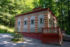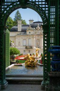 We continued our drive, surrounded by pine forest and not much later arrived at Schloss Linderhof. We parked the Jag and headed towards the palace which was located in a breathtaking landscaped park. First we saw the small Moroccan house. The pavilion was acquired at the World exhibition in Paris in 1878 and remodelled on King Ludwigs request. After his death it was moved to different locations but reconstructed in the palace park in 1998. For us it was to first of many wonders to unravel this morning.