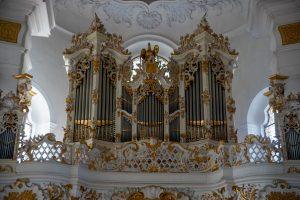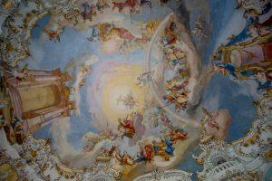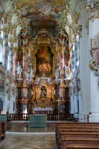 The Wieskirche was surrounded by green fields and it’s simple looks blended in completely with it’s surroundings. Inside this Unesco monument things were slightly different.