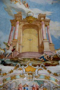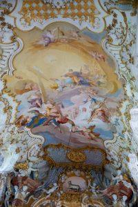 There was an excess of pompous religious art and a ceiling painting which seemed to come down on the walls. Lots of golden details of course which had to show off the richness of the Rococo church, which was built in 1740 by two brothers and now is a pilgrimage place as well as a tourist attraction.