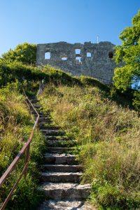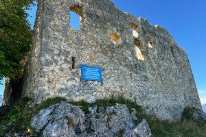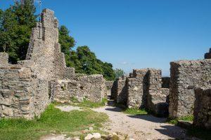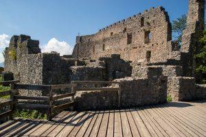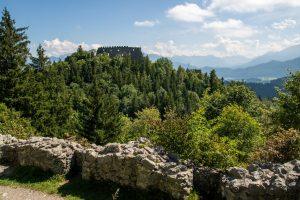 The second ruin we encountered today was the remains of Hohenfreyberg Castle which, together with Eisenberg Castle directly opposite, forms a castle group in the southern Allgäu that is visible from a long way off. The late mediaeval hilltop castle was abandoned during the Thirty years’ war and set on fire. Because of the there was not much left but it was a nice break on our hike.