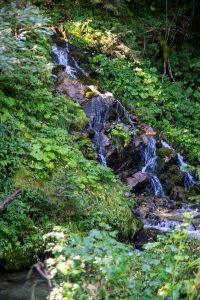We passed some small waterfalls and not much later we arrived at the bottom of a steep ski slope, although right now it was covered by a stunning looking green carpet. Green was the local colour anyway as I was amazed how fresh everything was over here compared with the dry and brown fields at home.