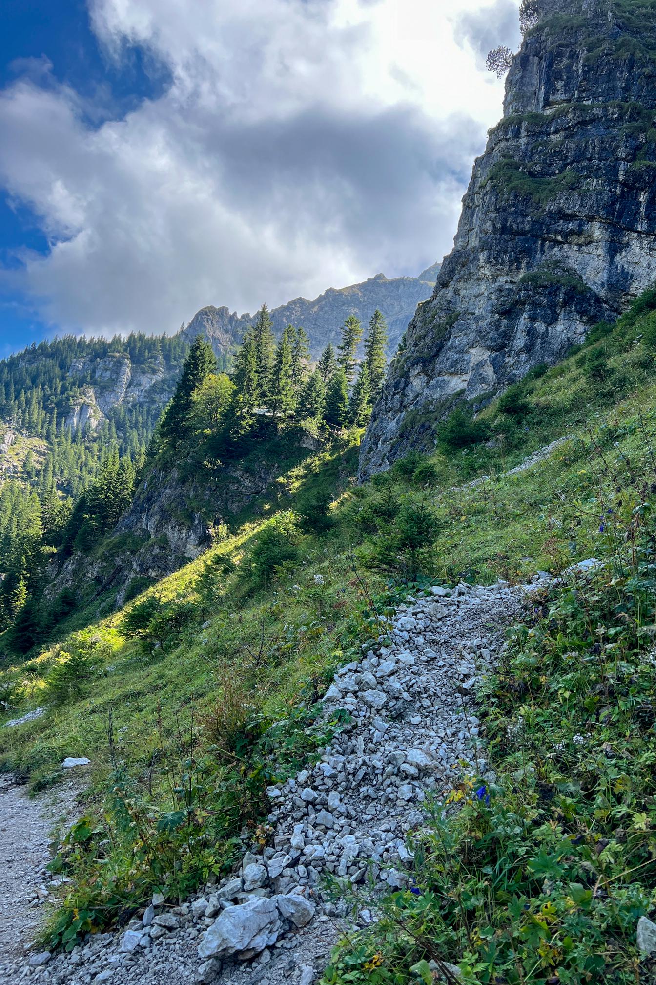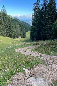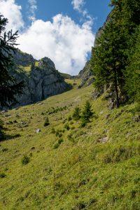 It was a varied hike between alp fields with majestic views, dense forests and steep hills. We had to backtrack once near a small lake as the path simply was to overgrown to continue, fortunately the map showed an alternative and not much later we were back on track.