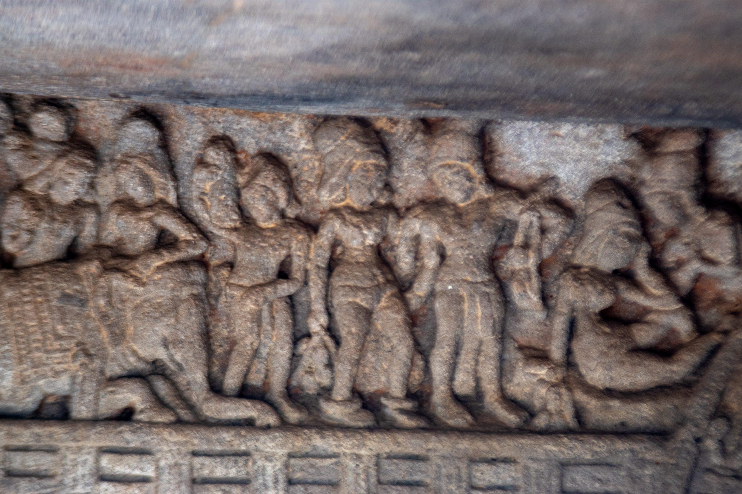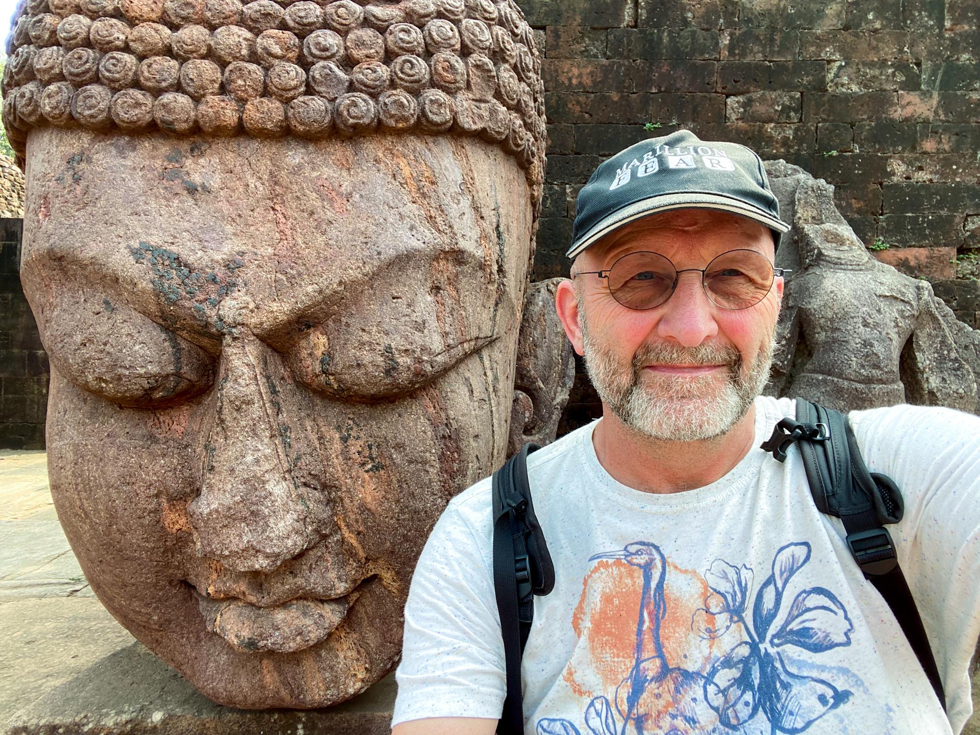 About 10 km further on, in Ratnagiri (“Hill of Jewels”), was another excavation site. It is the most impressive of the three, which, between the 7th and the 11th centuries, was a major Buddhist university and monastic establishment. Located on top of a mound, crowned by a large stupa, I admired a monastery with a central courtyard and an impressive colonnade around the monks’ cells. A beautiful 4 meter high image of the seated Buddha could be seen inside, together with other Buddhist divinities, the entrance doorway was superbly carved.