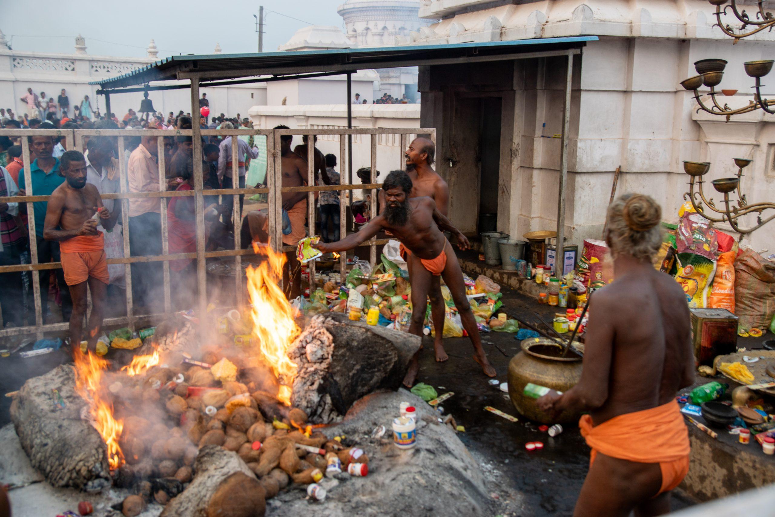 It was located inside a courtyard which was now packed with people. Sadhus were walking in circles around the main temple waving feathers while the crowd was chanting and raising their arms, it was a magical experience, one could really feel the religious power and enchantment.