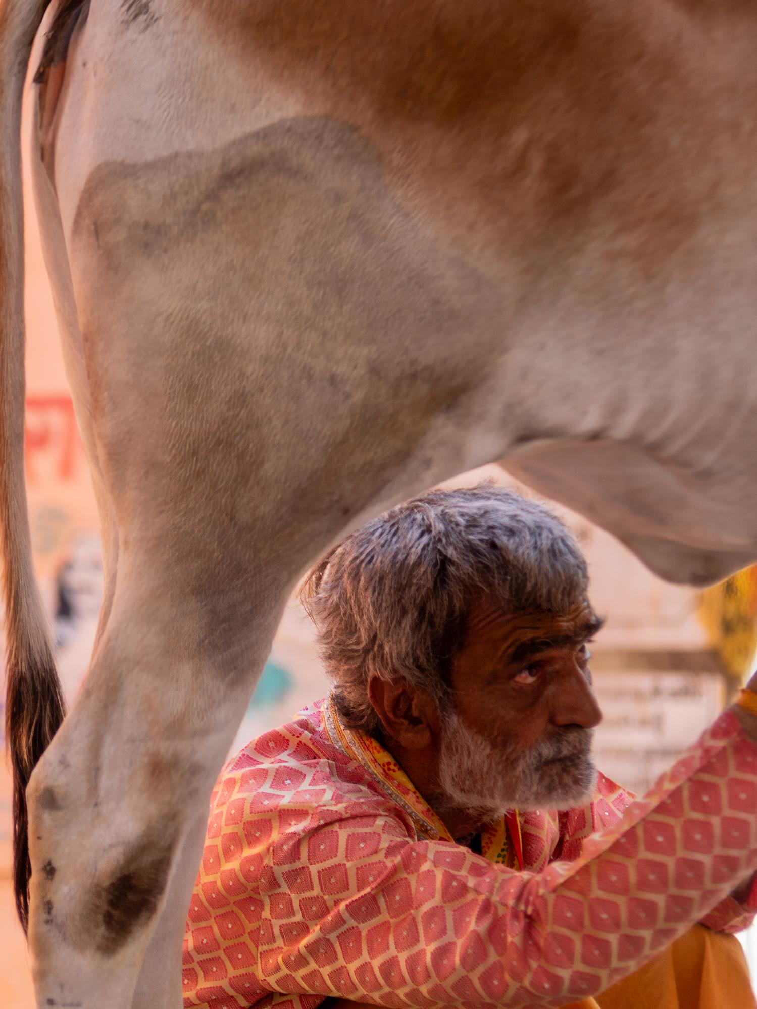 A short rickshaw ride in the morning brought me to the neighbouring town of Pushkar, a holy town of temples, ghats and whitewashed homes. Pushkar is arrayed around the banks of Lake Pushkar, which is said to have formed when the god Brahma threw a lotus flower to the ground. From bells chiming at dawn to the colourful bazaars, it is a vibrant place to visit; pilgrims are drawn by the town’s Brahma Temple, considered the auspicious to visit.