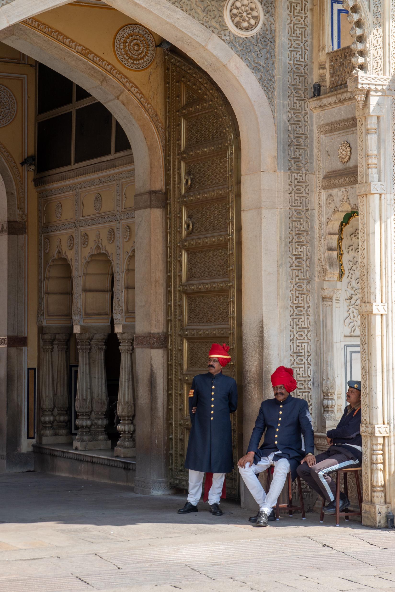 Next to it was the entrance gate of the City Palace Museum, which occupies Jaipur’s City Palace. Built between 1729 and 1732 during the reign of Maharaja Sawai Jai Singh II, the palace lies at the heart of the city and has been home to the rulers of Jaipur since the 19th century. There were some interesting galleries of all sorts but I must admit I was more interested by the architecture of the place.