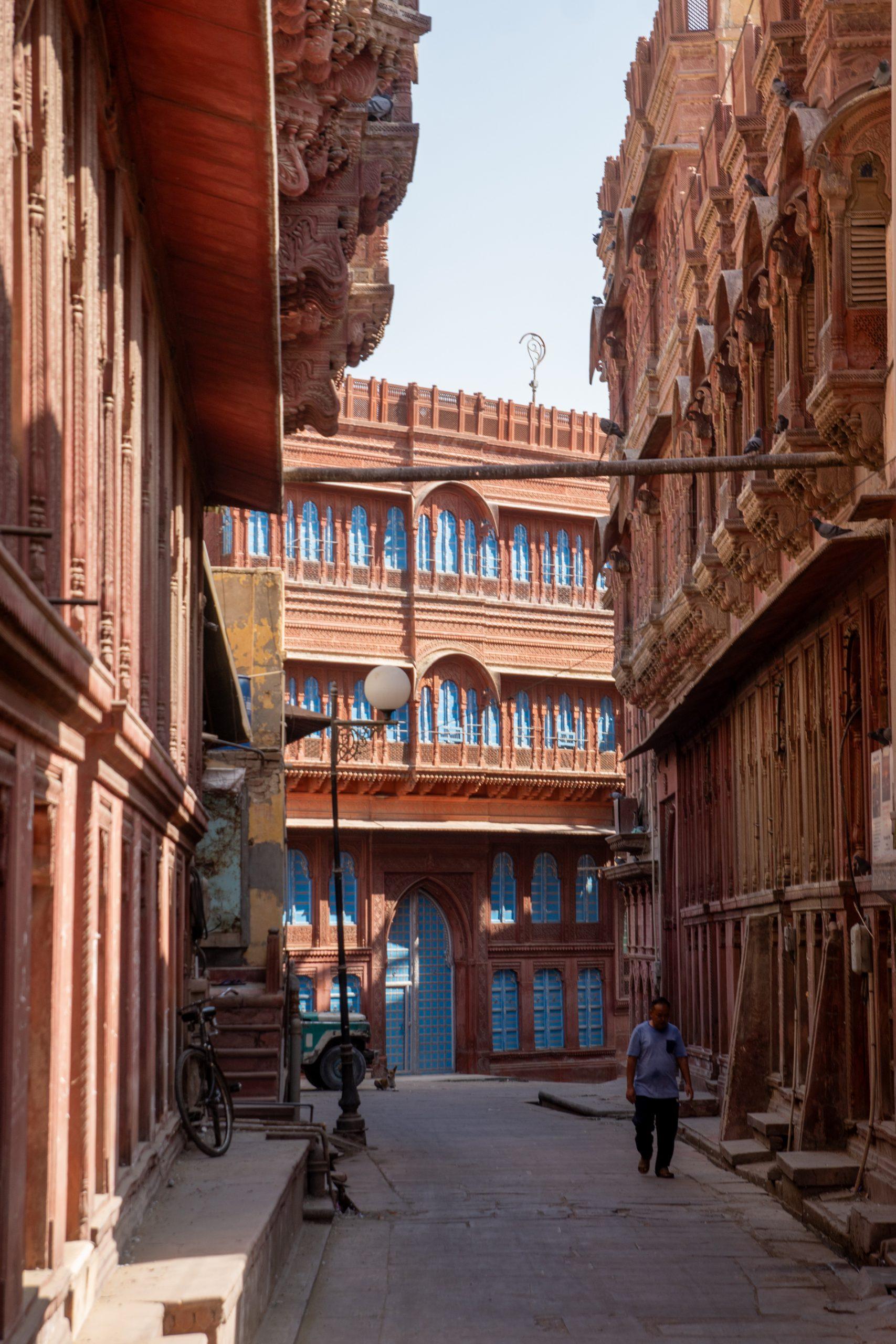 We remained in the old city to visit the grand 17th- and 18th-century havelis of Bikaner’s wealthy merchants line the narrow lanes in the vicinity around Rampuria Street. Two of the most ornate are the Rampuria and Kothari havelis, which definitely were worth visiting.