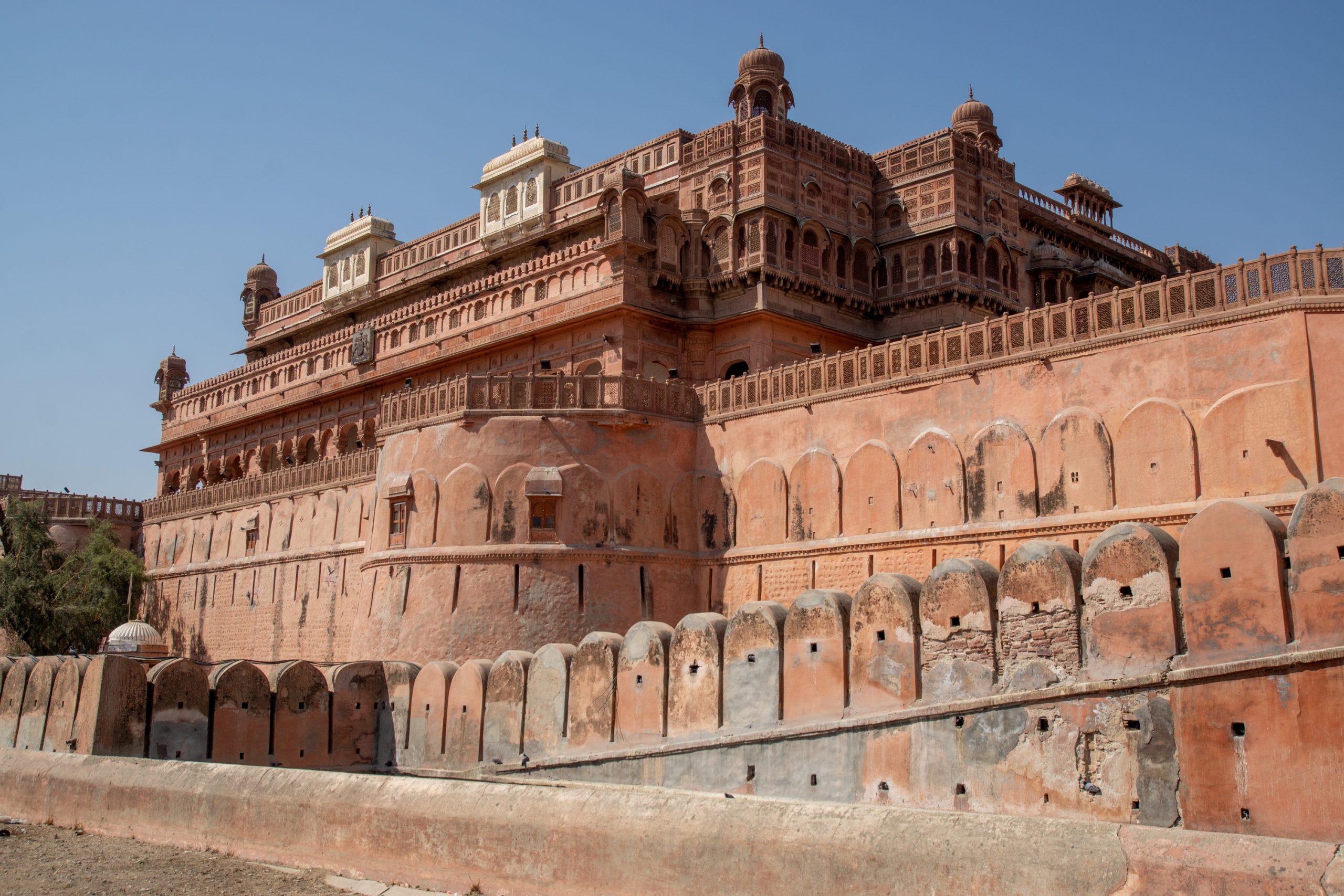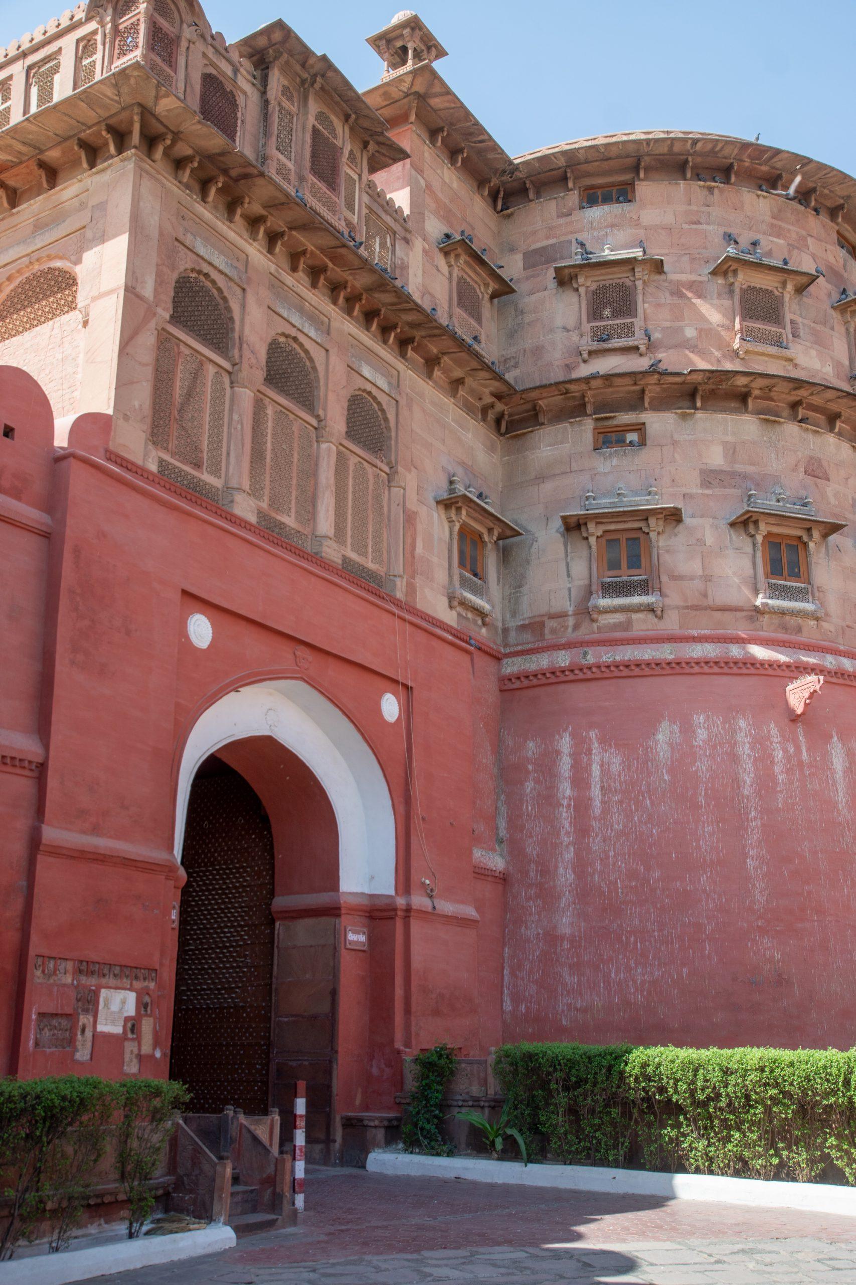 Our next stop was at the town’s most significant landmark, Junagarh Fort was constructed between 1587 and 1593 by the third ruler of Bikaner, Rai Singh. The fort is protected by a 986meter long sandstone wall with 37 bastions, a moat and, most effectively of all, by the forbidding expanse of the Thar Desert. Not surprisingly, it has never been conquered, a fact that explains its excellent state of preservation. I loved wandering around it for an hour or so before we went to a tea stall for a short break.