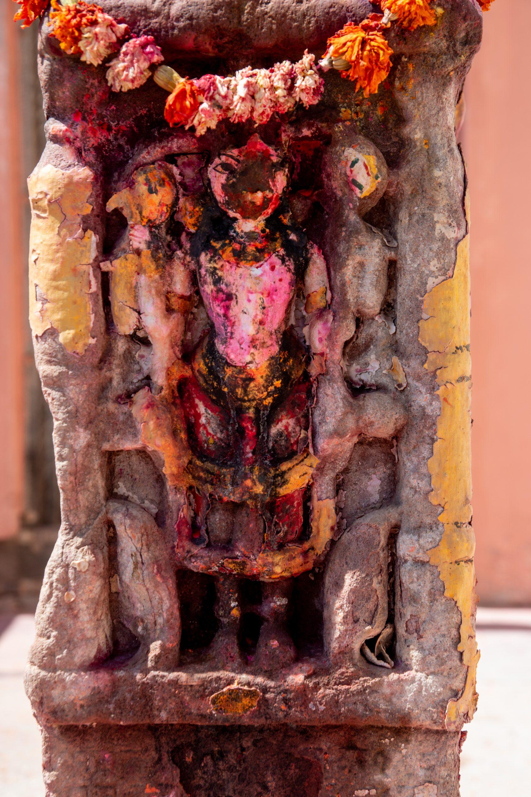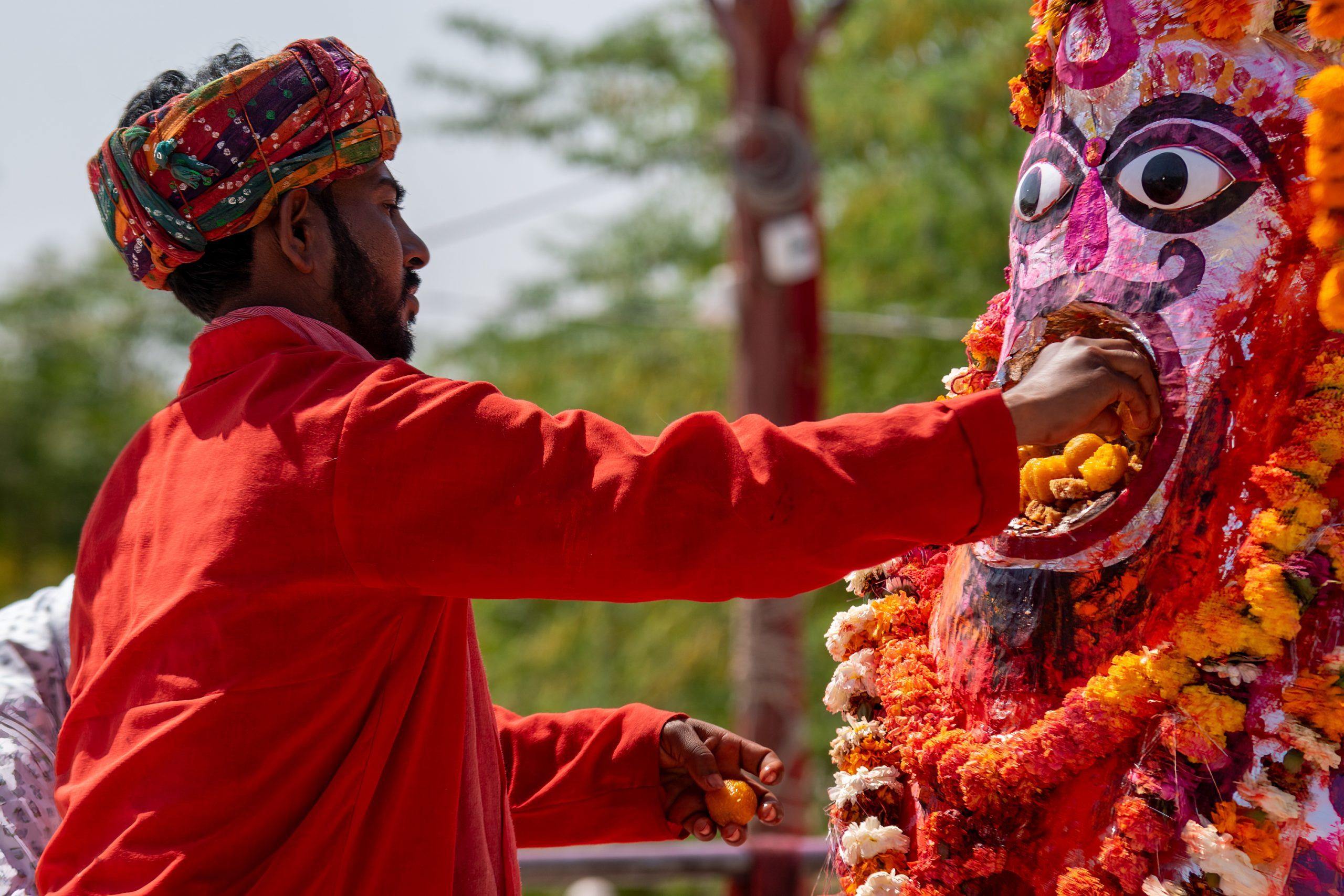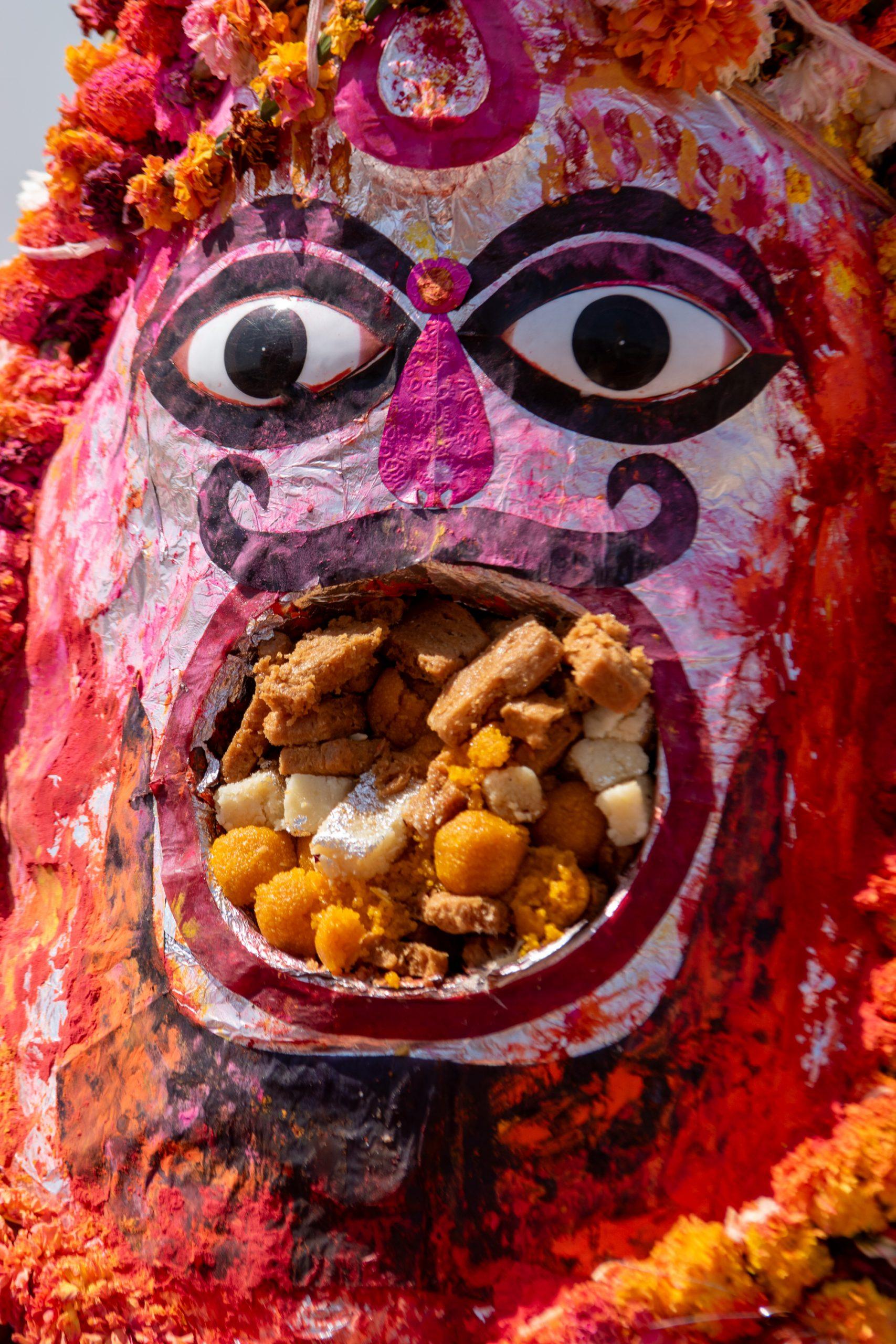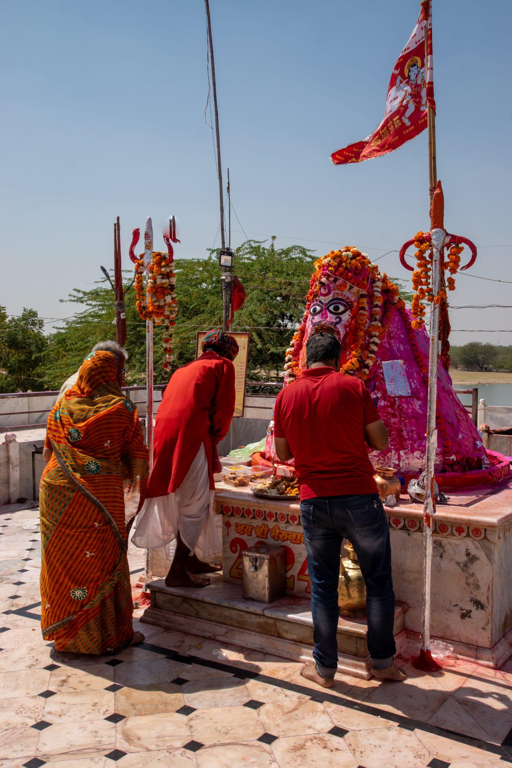 Then we started the 25km journey to the Kodamdeshwar, an open temple dedicated to Bheuji which isn’t truly one of it’s kind. It looked rather bizarre at first instance but it became even more weird once the offerings started and a protest placed large amounts of food in the mouth of the statue, only to take it out not much later and repeat the procedure with another amount of food, brought by devotees.