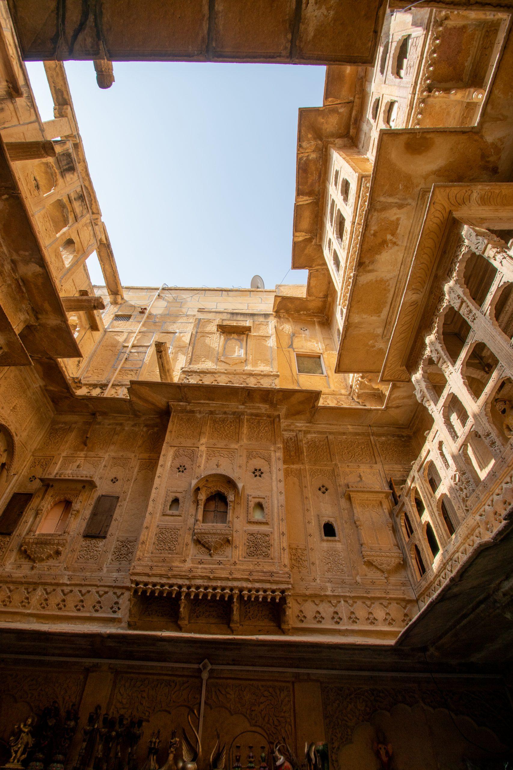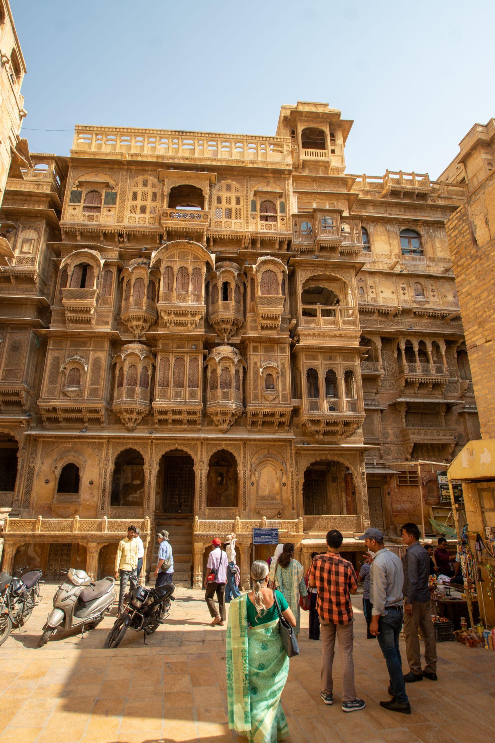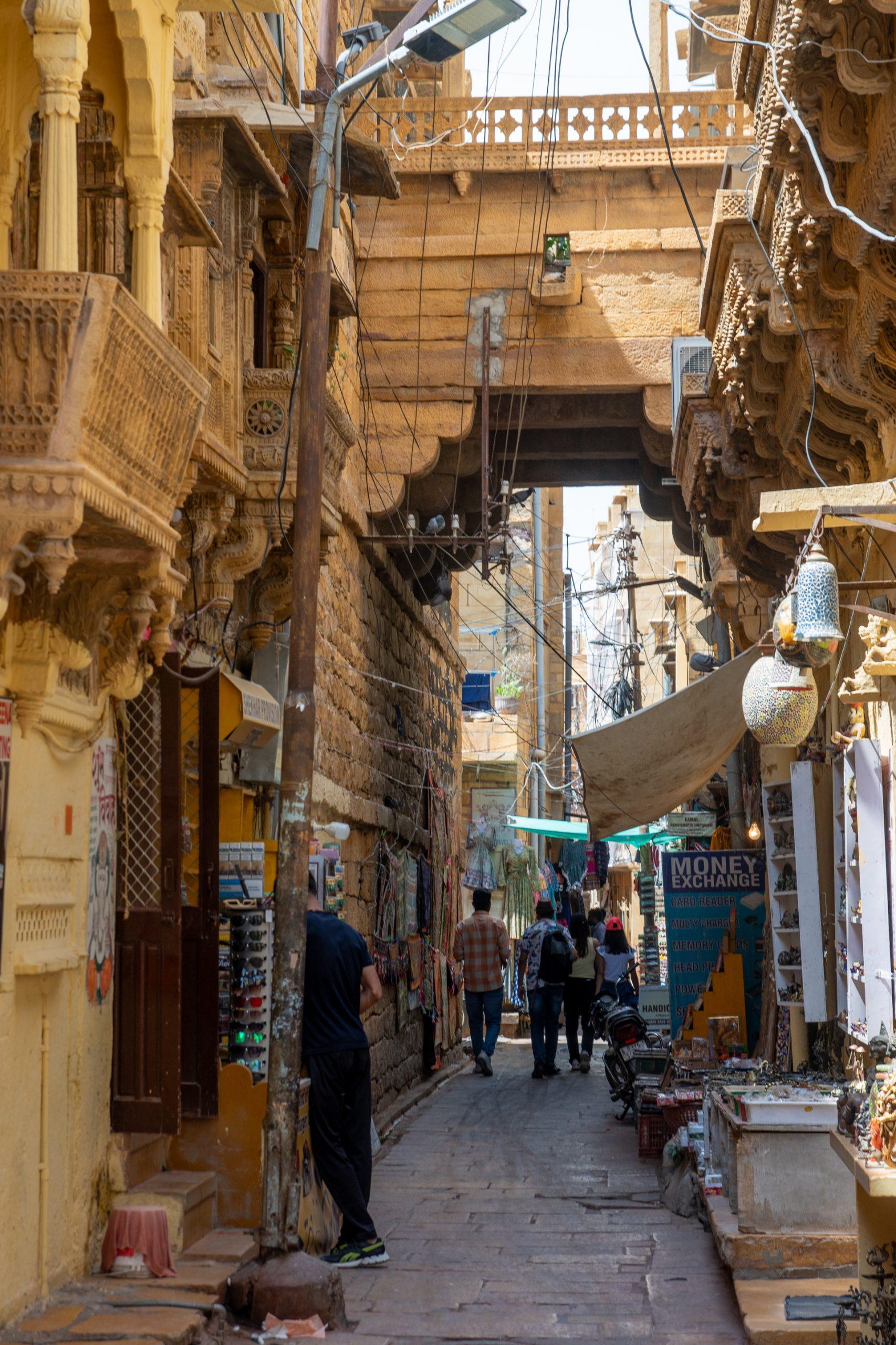 After my second shower of the day it was time to start my exploration. Today a remote outpost in the Thar Desert, Jaisalmer, founded in the 12th century, was once a busy trade centre on the caravan route to Central Asia. Its rulers grew rich by looting the caravans, but by the 1500s Jaisalmer had become a peaceful town, its wealthy inhabitants competing with each other to beautify their austere desert surroundings with splendid palaces.