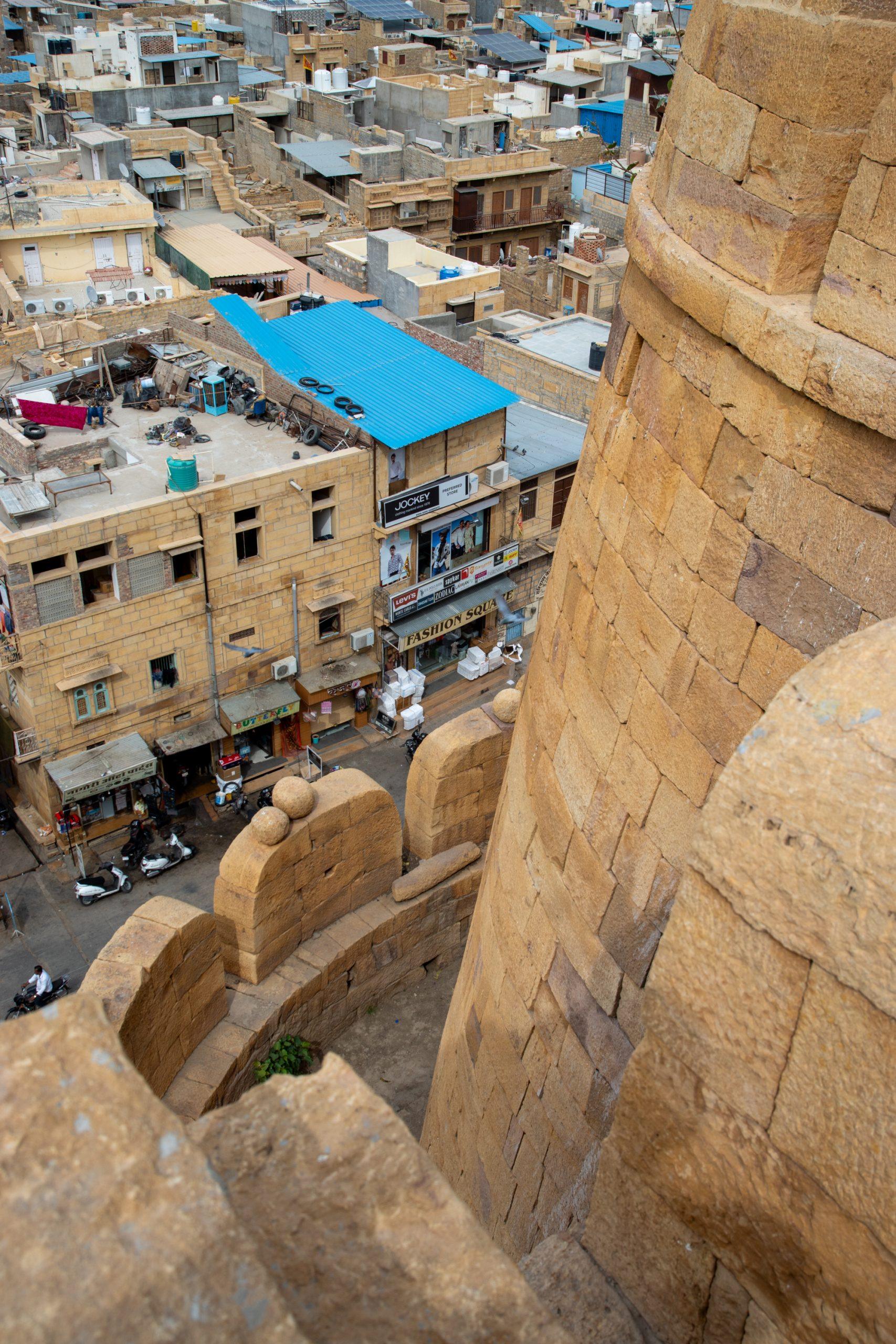 A place that cannot be missed whilst in Jaisalmer and which was dominantly visible from the rooftop terrace of my hotel is the Jaisalmer Fort, which rises like a fabulous mirage out of the sands of the Thar Desert, the awesome contours of its 99 bastions softened by the golden hue of the stone. Built in 1156 by Maharawal Jaisal, and added to by his successors, this citadel stands on the peak of the 80 meter high Trikuta Hill.