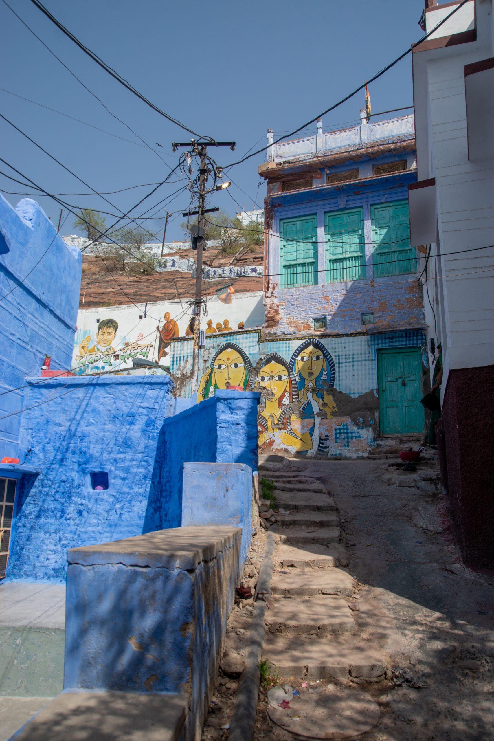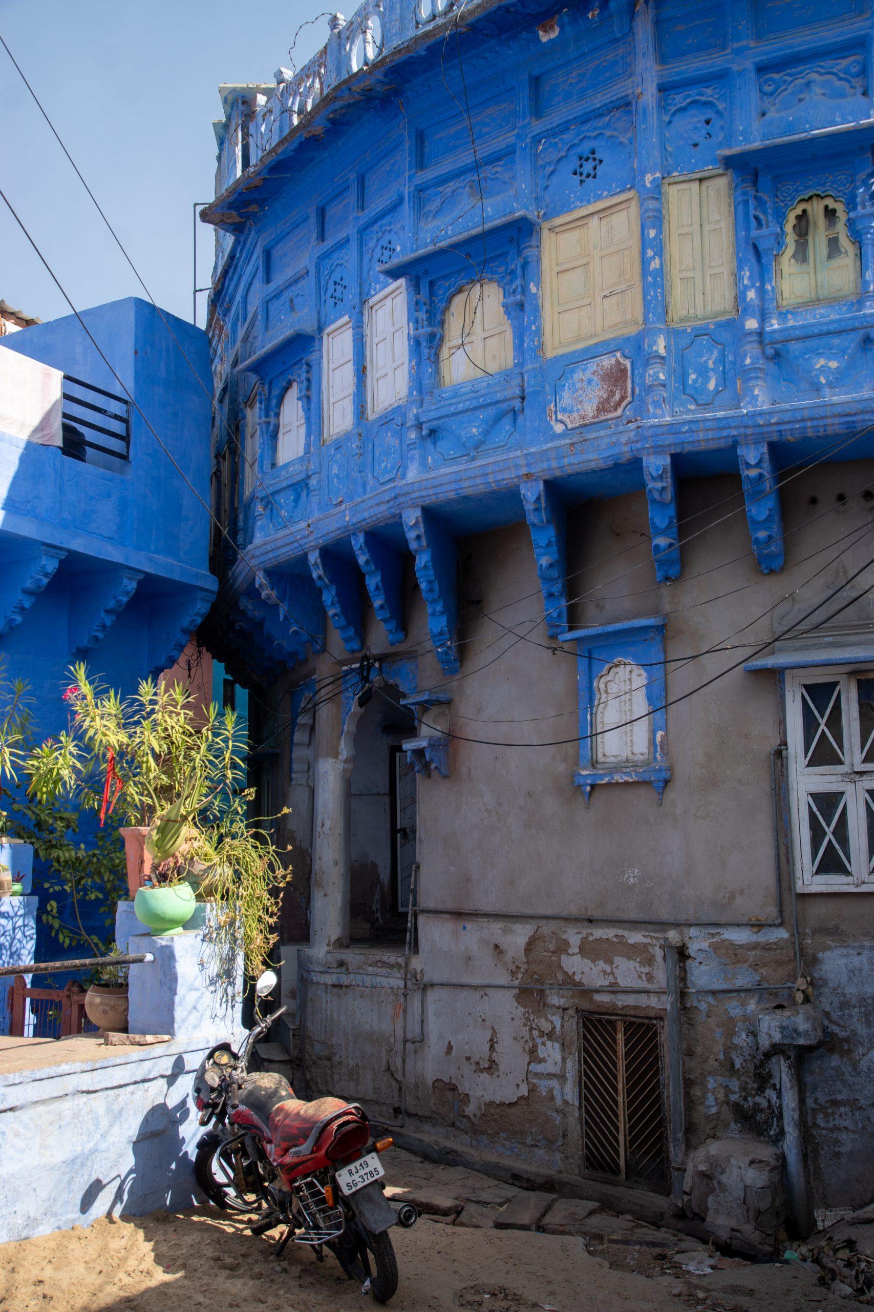 Although we left in time by the time we arrived in Jodhpur, 300km further on, we had a delay of almost an hour. I took a rickshaw towards my hotel but as it was in the centre of the old blue city I had to walk the last bit as even a rickshaw could not pass the narrow streets.