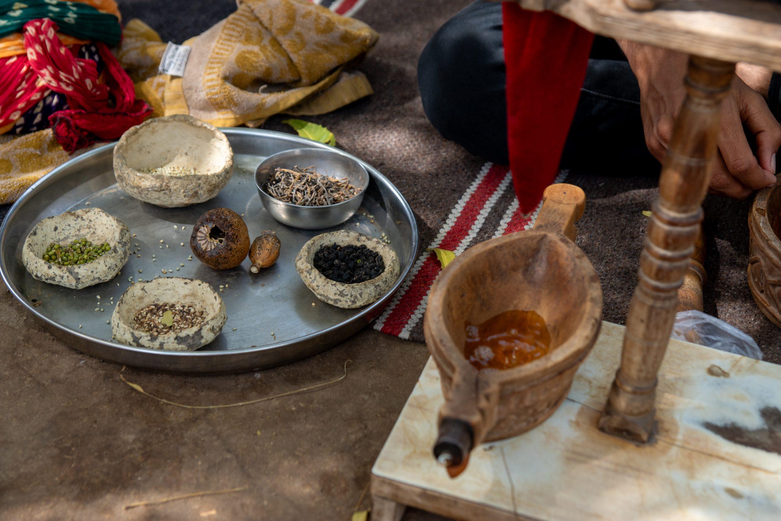 From there it was an hour jeep ride to one of the villages. I was shown around and told about their way of living and an opium ceremony was performed. The Bishnoi people, due to their customs are the only ones in Rajasthan to legally own a small amount of opium in each village (5 grams max.). I was offered a small zip of diluted opium water which was prepared during the ceremony and accepted it, only after being told it would have no effect. It was rather bitter and it’s taste came close to liquorice.