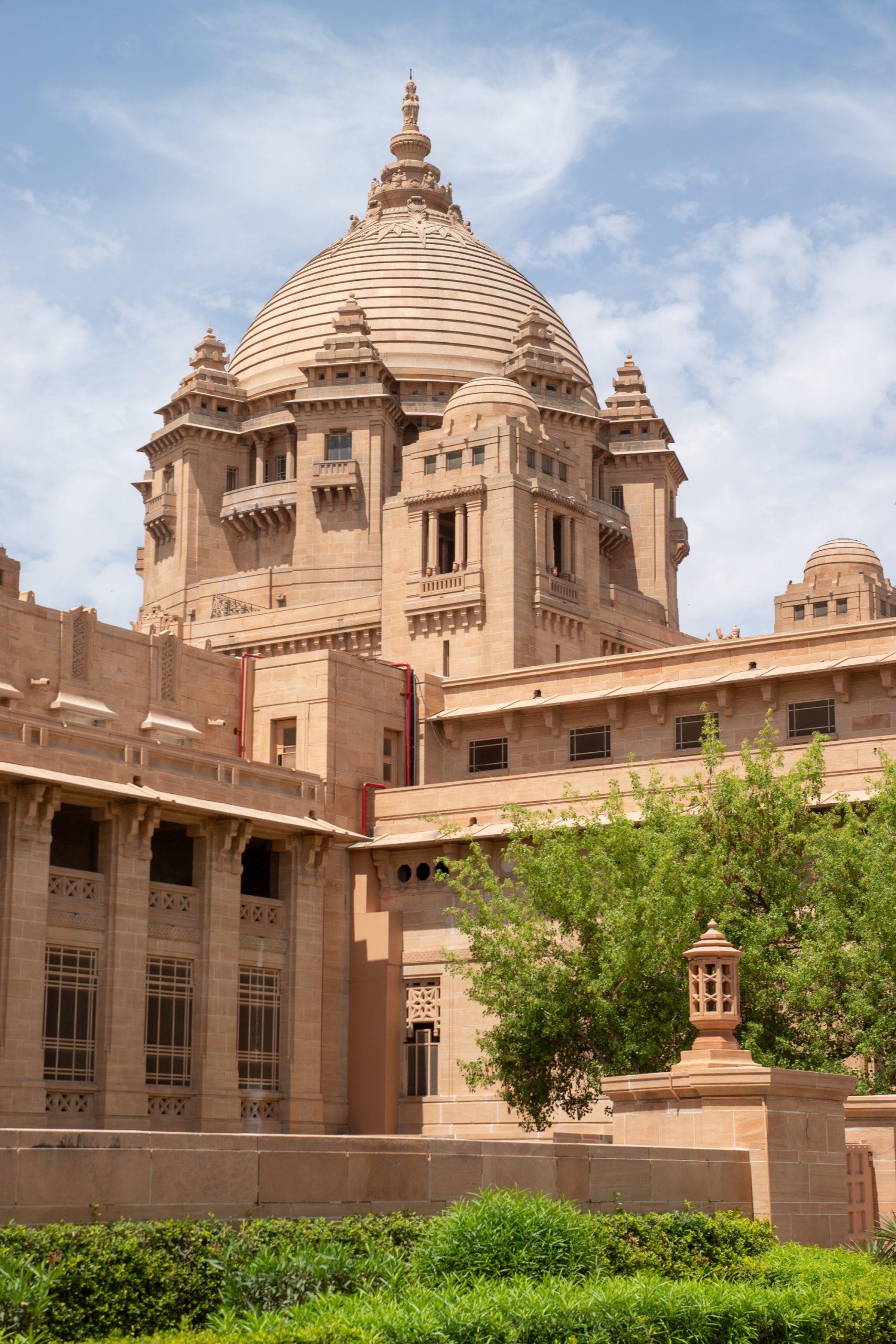 My guide then dropped me off at the Umaid Bhawan Palace. This immense palace, built of creamy-pink sandstone and marble, has 347 rooms, including eight dining halls, two theatres, a ballroom and a vast underground swimming pool. A 60 meter dome covers the cavernous central hall, which, at its inauguration, seated 1,000 people for dinner. It is now divided into three parts, a luxury hotel, a museum and private residency.