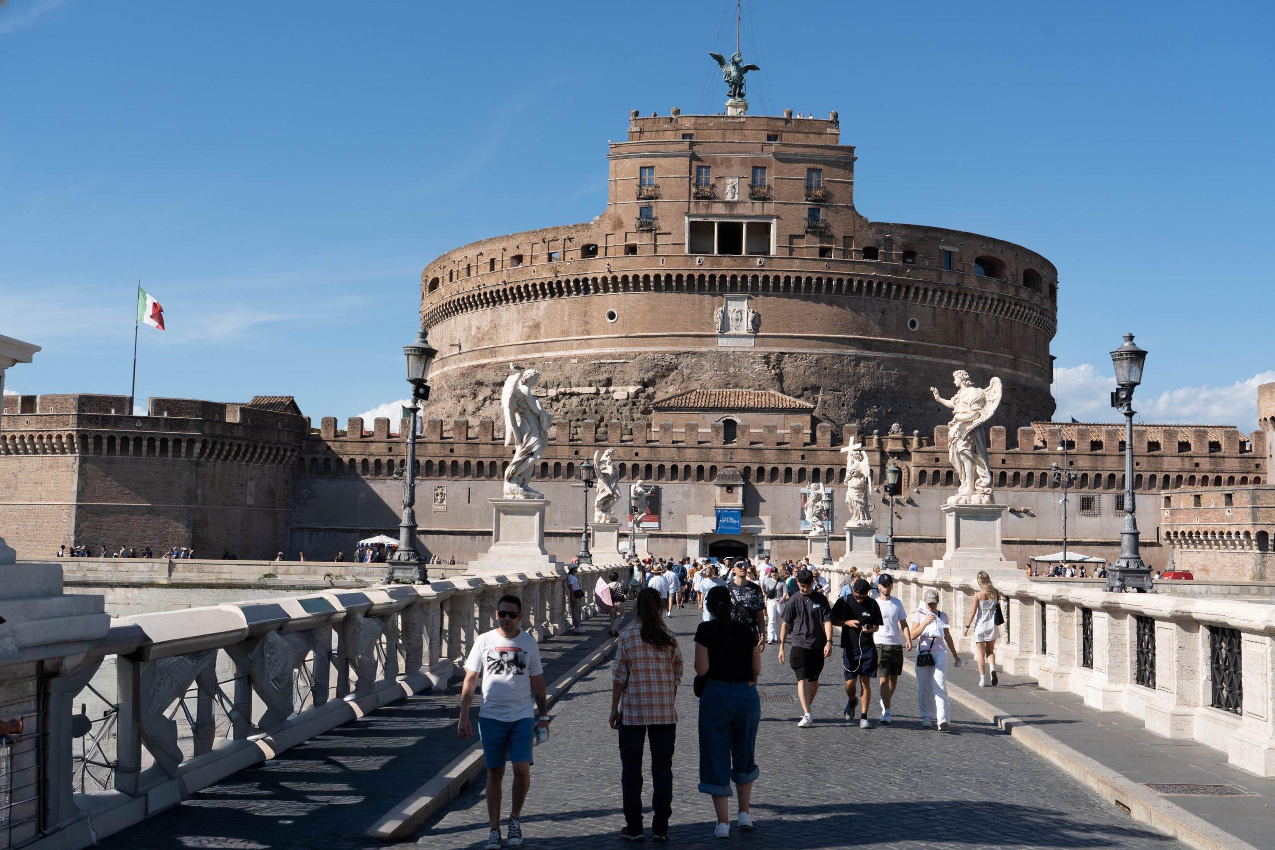 To let things sink in we crossed the Tiber and ordered a large beer at a terrace in the area. Then we continued to the final visit of today, Castel Sant’Angelo, a circular fortress on the Tiber River in Rome, originally built by Emperor Hadrian as a mausoleum for his family around 123 AD, and now a national museum housing art and history collections. For centuries, it served as a papal fortress, tribunal, and prison, and is famous for its role in legends like the Archangel Michael’s vision ending the plague.