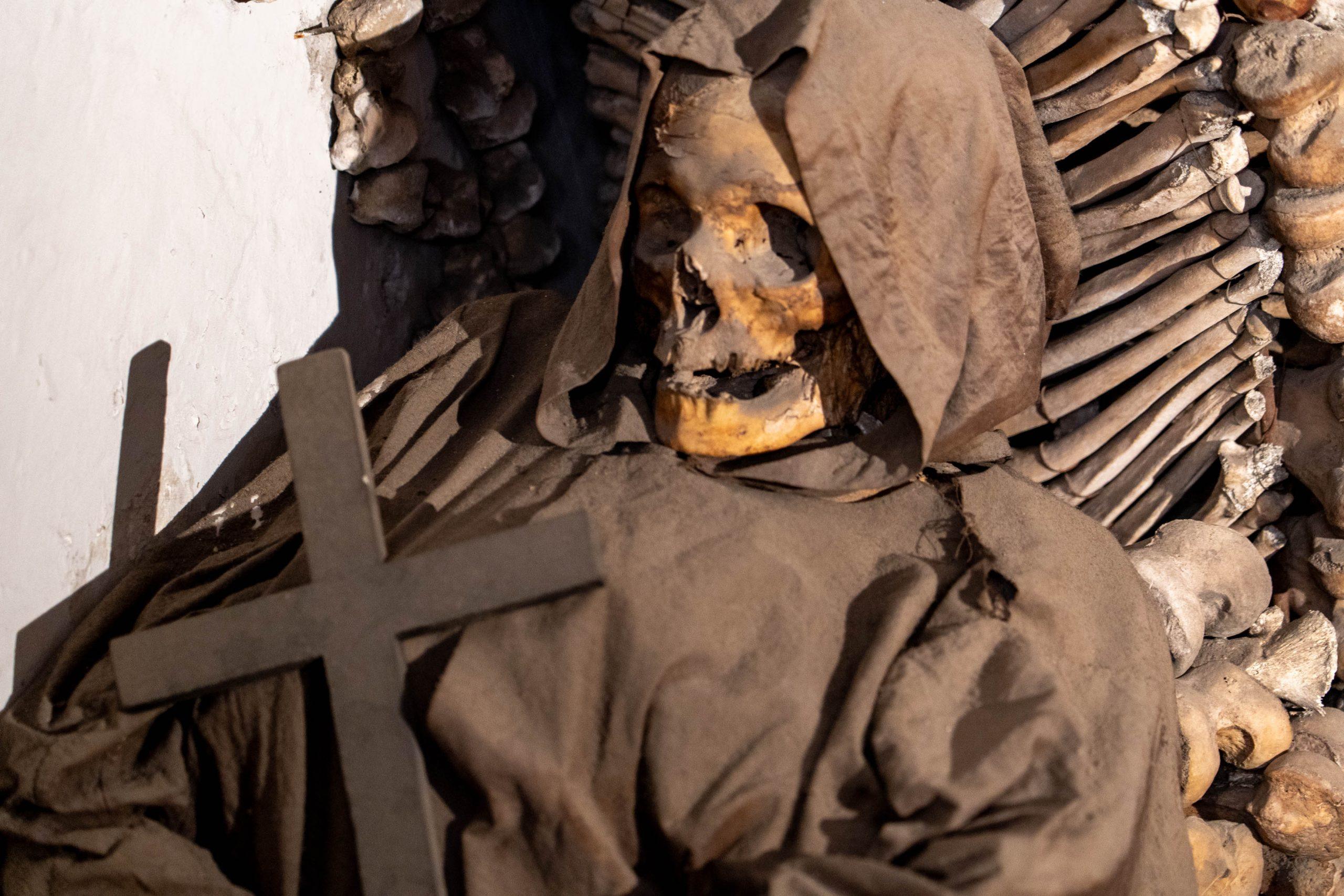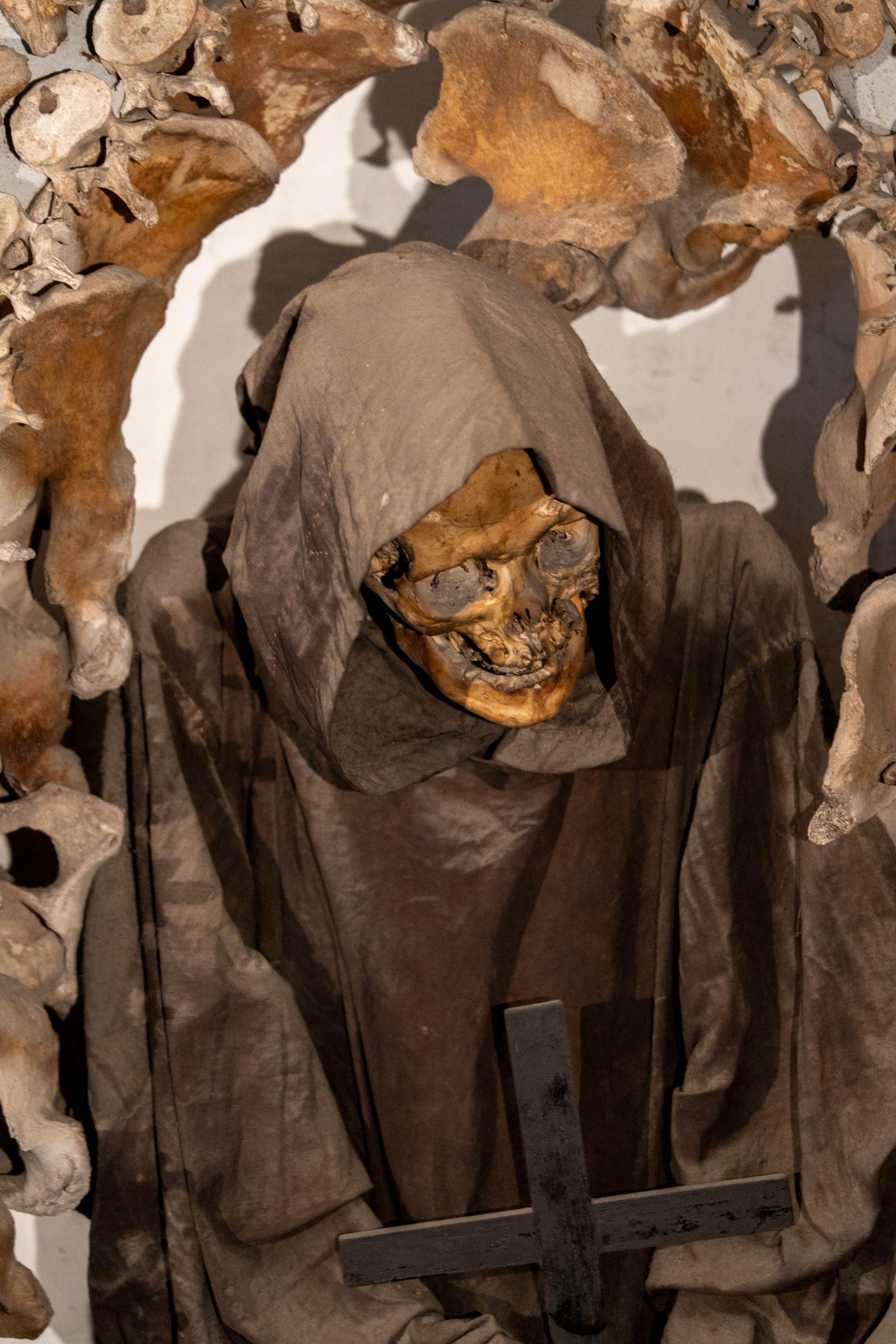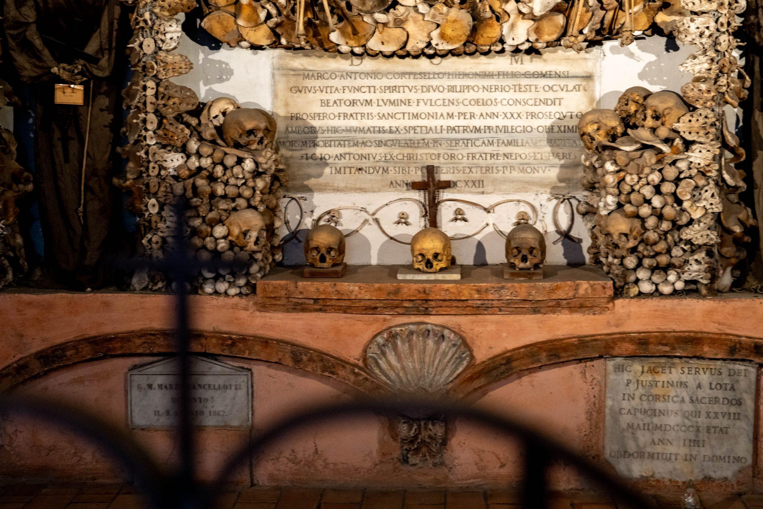 It wasn’t a long way from Barberino metro station, and we were there just before the doors opened. The Museum and Crypt of the Capuchin Friars in Rome features a museum detailing the Capuchin order’s history and a crypt decorated with the bones of approximately 4,000 friars. They were arranged in intricate architectural designs like chandeliers and arches, serving as a poignant reminder of mortality and the fleeting nature of life, a concept known as memento mori.