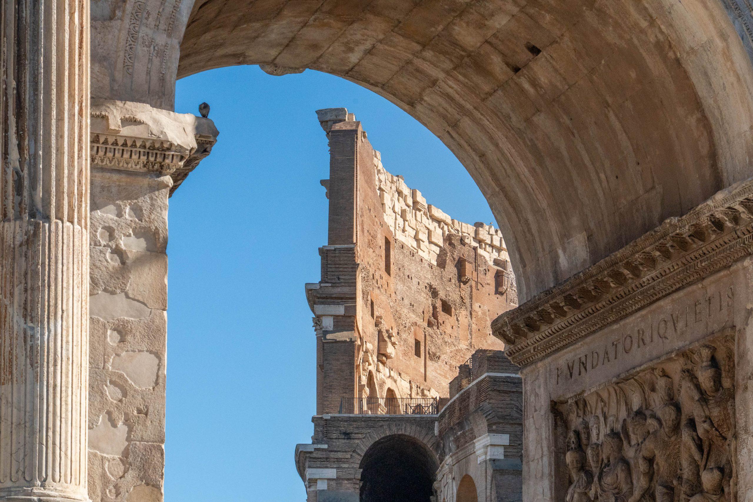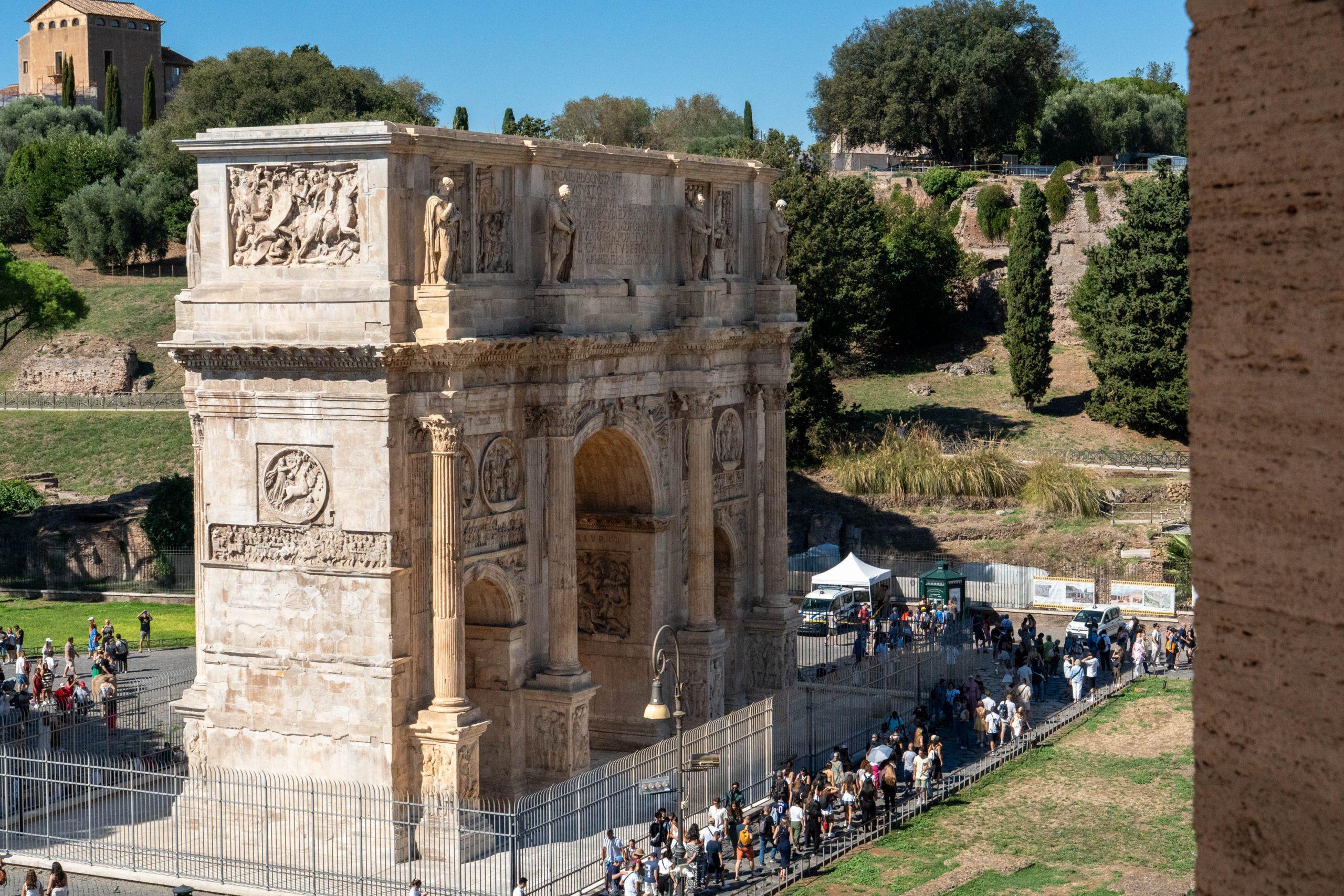 As we were early, we made a full walk around the colosseum so we could enjoy it from all perspectives. We passed the Arch of Constantine and got a first glimpse of the Fora Romana, an impressive view.