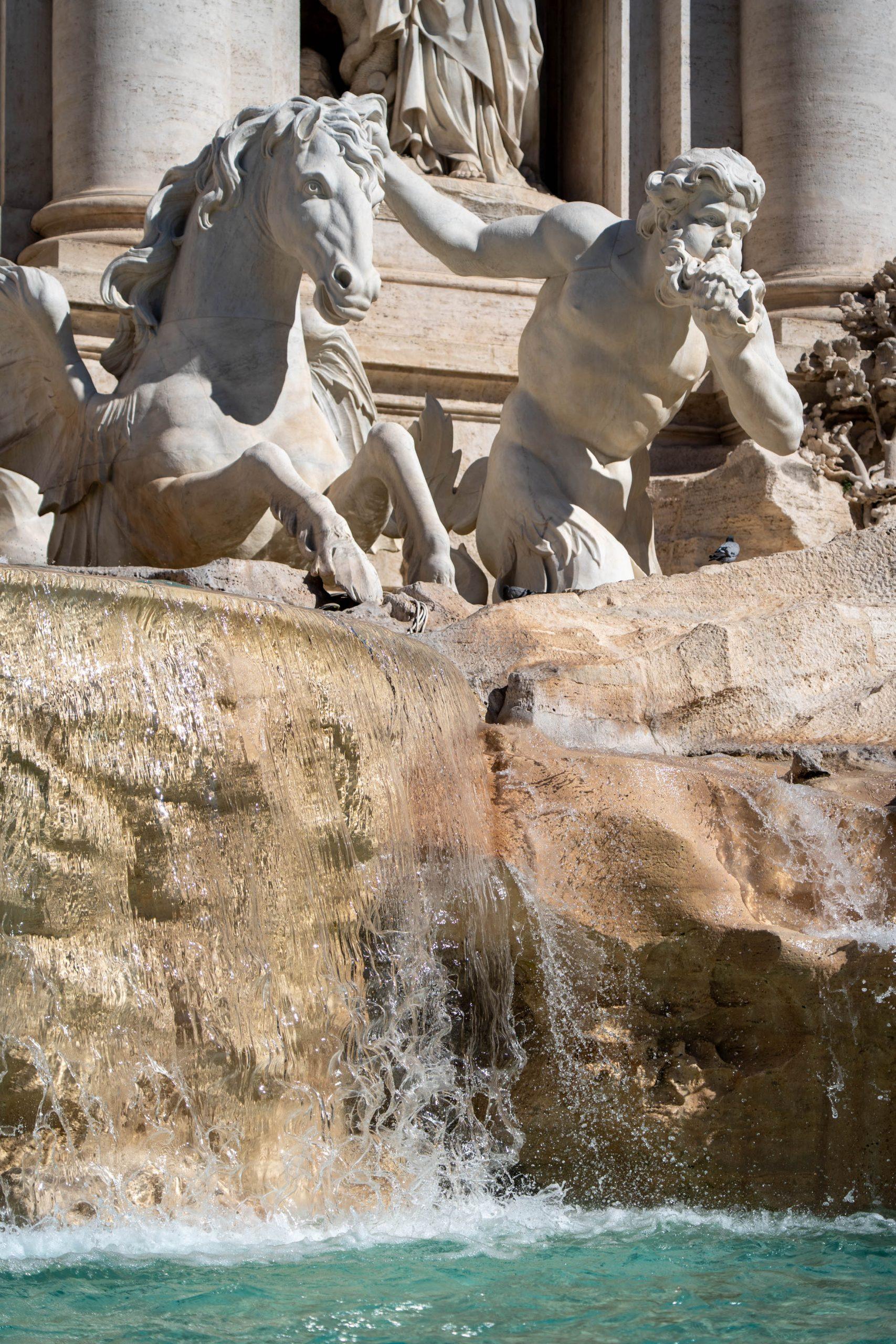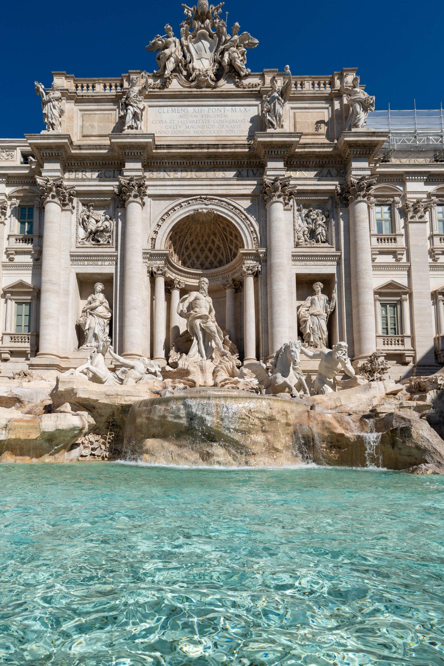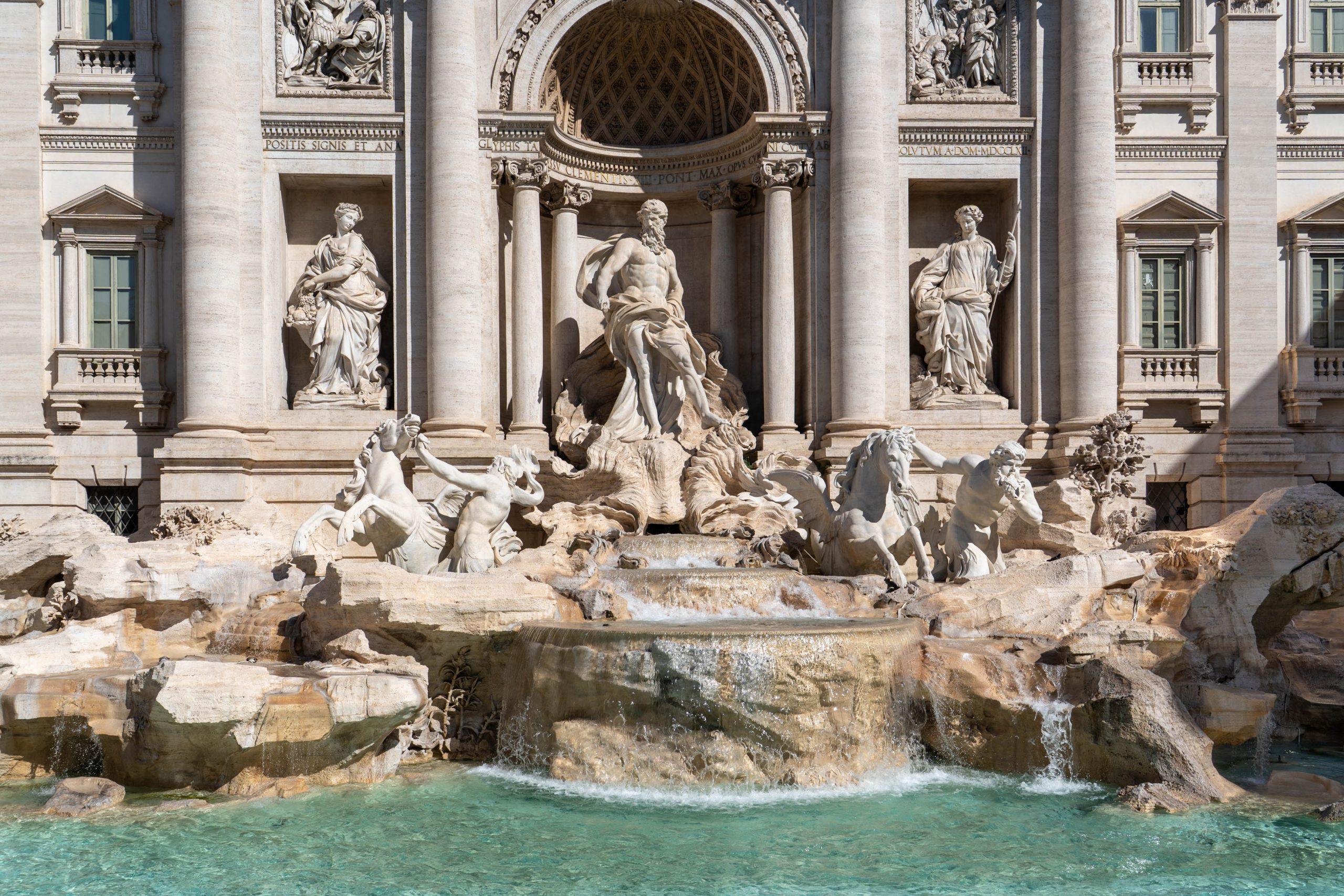 The Trevi Fountain is Rome’s largest Baroque fountain, famous for its dramatic sculptures, particularly the central figure of Oceanus, God of the sea, atop a chariot. Designed by Nicola Salvi and completed in 1762, the monument is constructed from travertine stone and draws water from the ancient Aqua Virgo aqueduct.