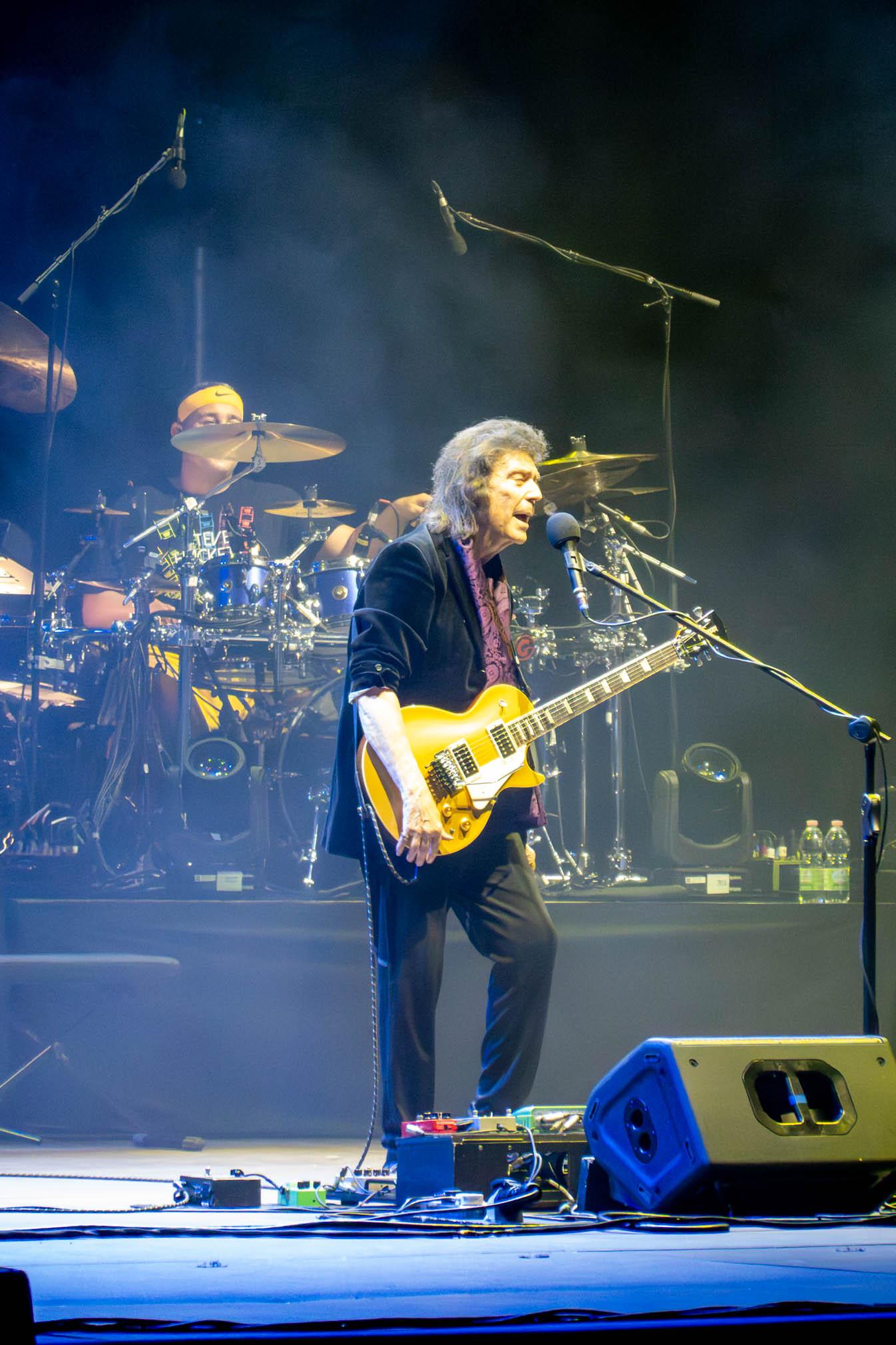 We had a drink and something to eat (nothing special but it filled our stomachs) after which we went to our seats. At nine punctual the concert started, with some newer work from Steve Hackett but gradually he delved into his back catalog as well. After a short break the second set started and according to the reaction of the audience this was what everybody was waiting for, highlights from The Lamb Lies Down On Broadway. I thouroughly enjoyed the selection and sang along with each and every song. For me it was a trip to memory lane and it was hard to believe that the Lamb is celebrating it’s 50th anniversary this year. Next was an even older song, the epic of progressive rock epics, Supper’s Ready. As if the original 23 minutes were not enough Steve played an extended version with an additional long guitar solo at the end, this part was vetoed by the other Genesis members at the time but now there was nothing stopping him to include it to the epic track.